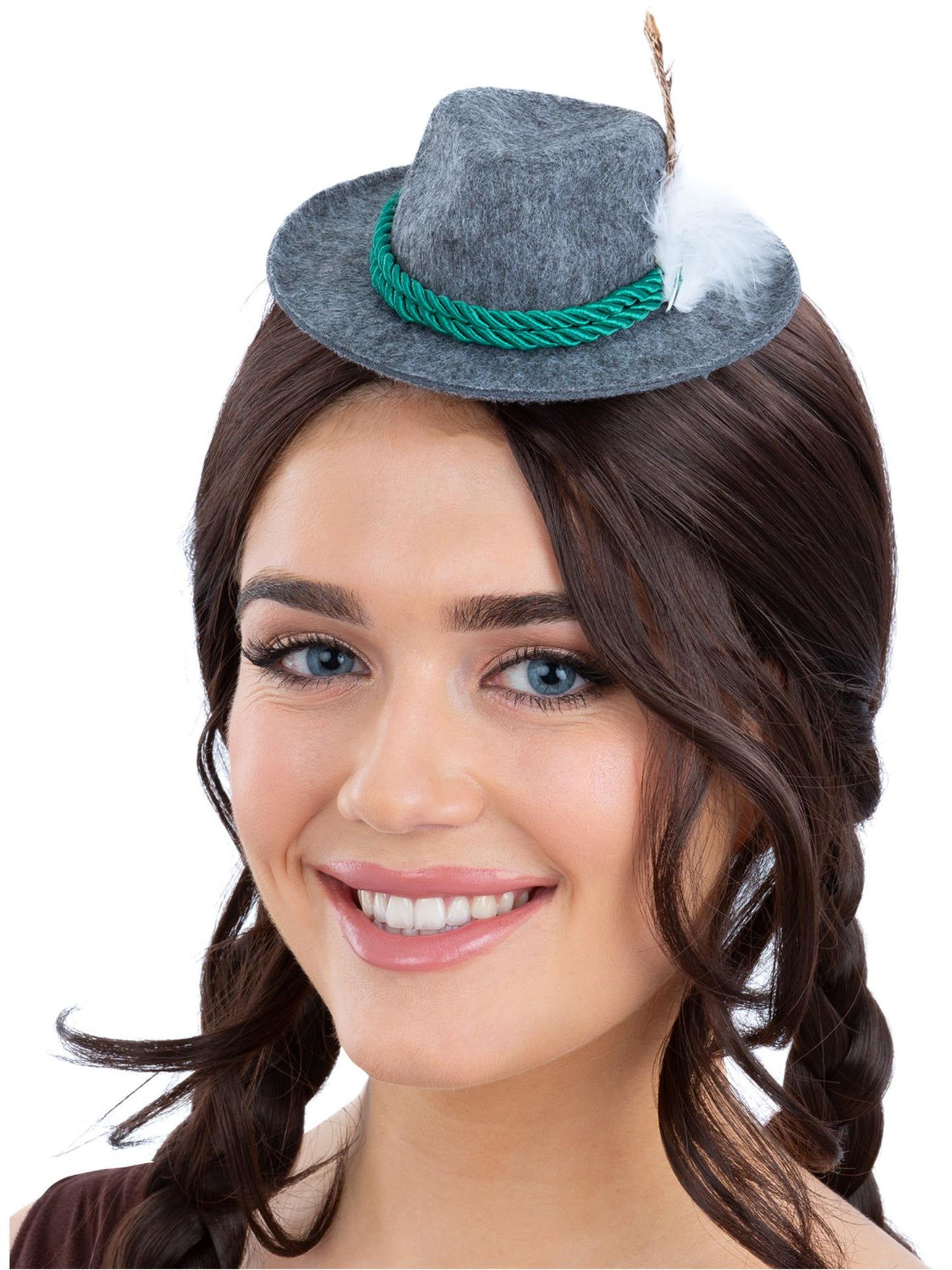 Mini Bavarian Trenker Hat, Grey, with Hair Clips