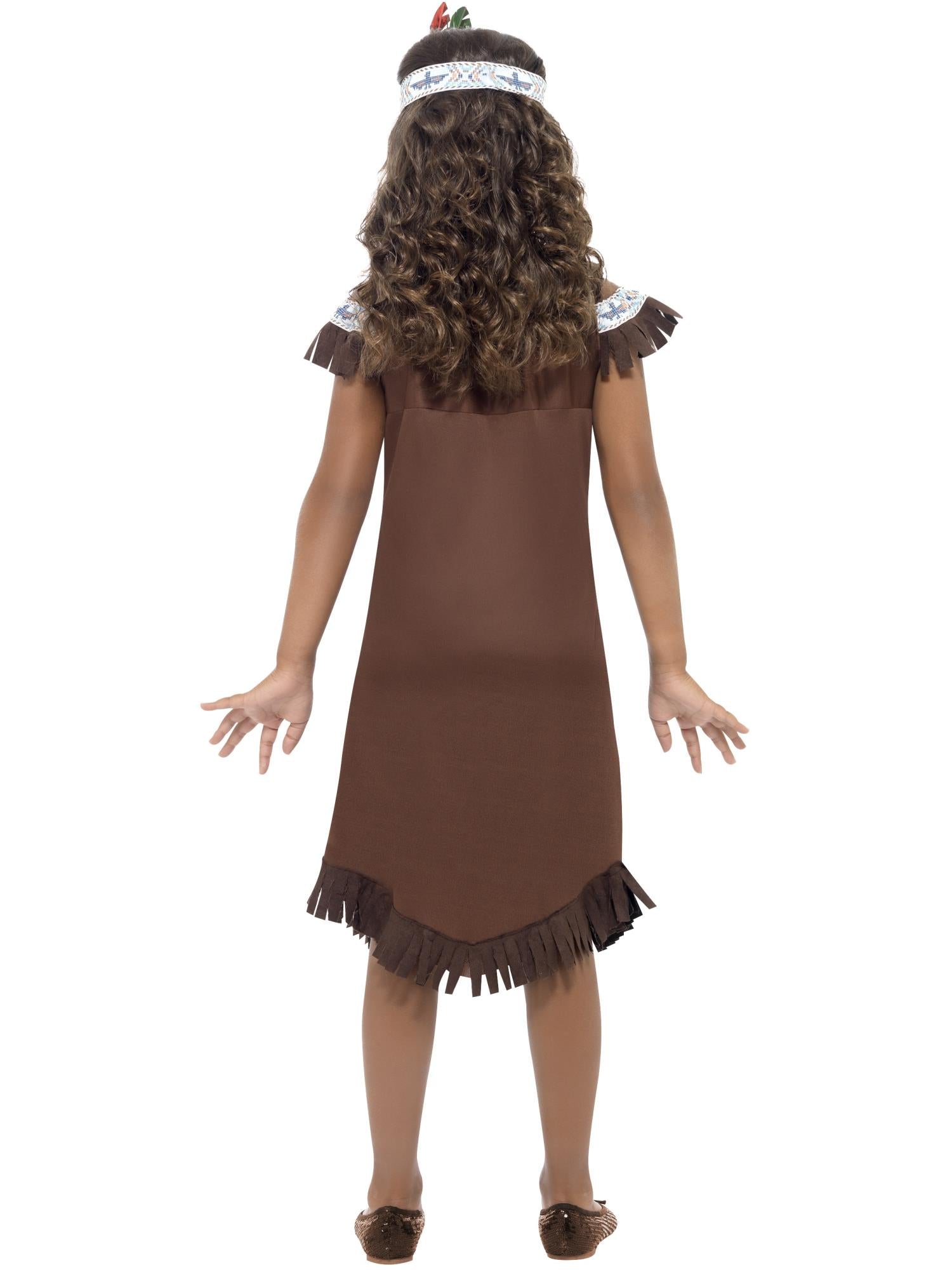 Native American Inspired Girl Costume, Brown, Fringed Dress & Feather Headband