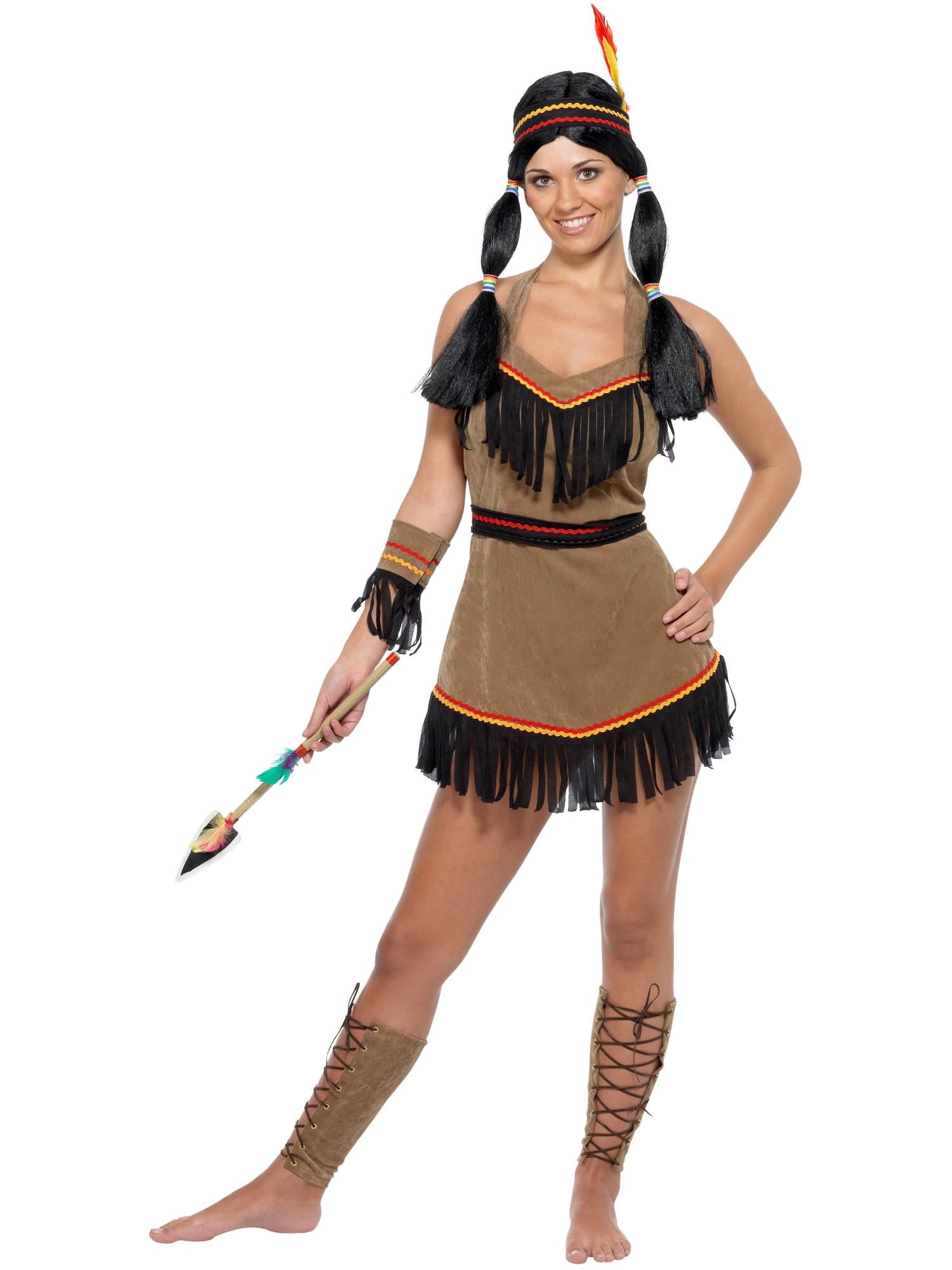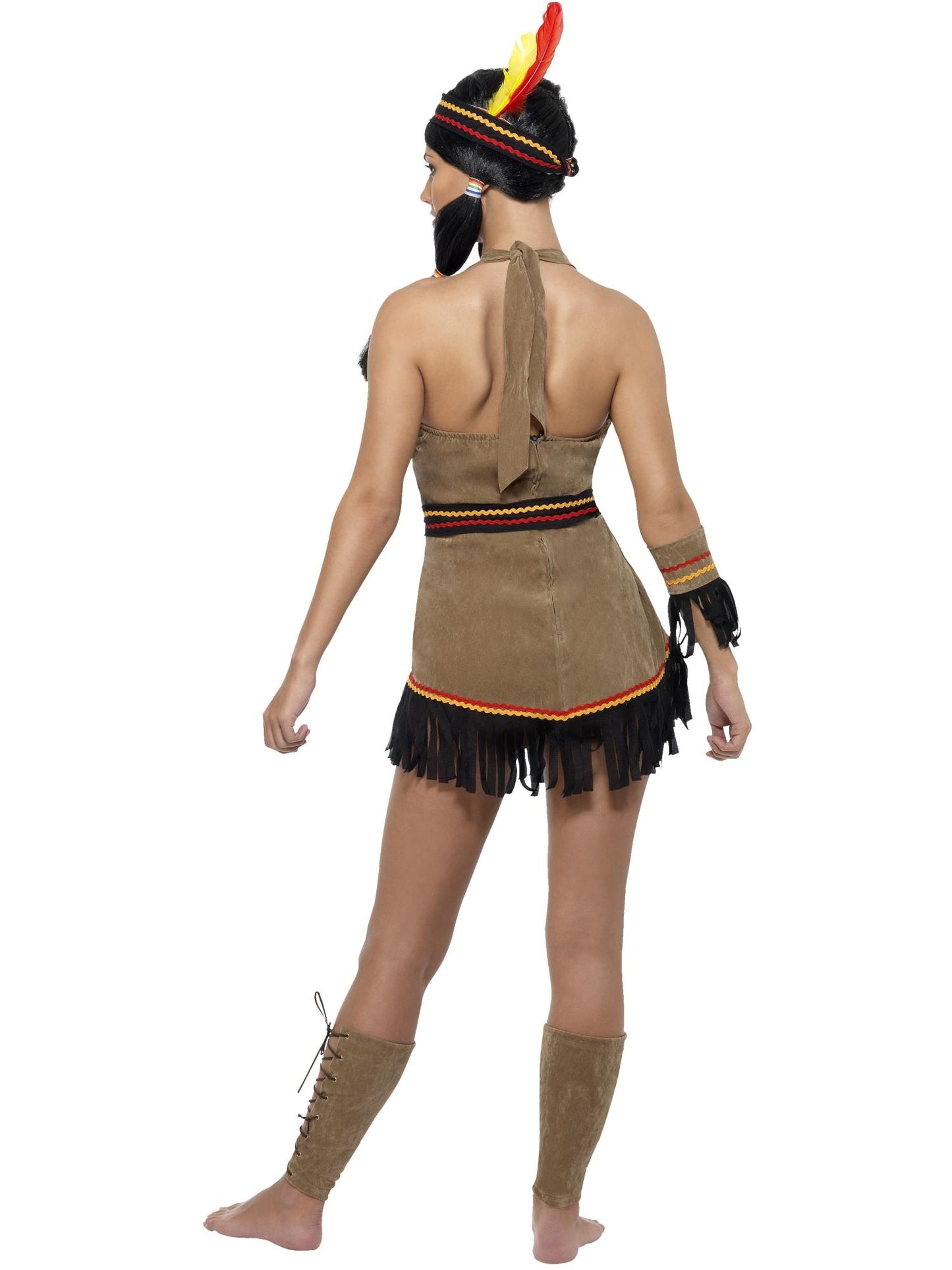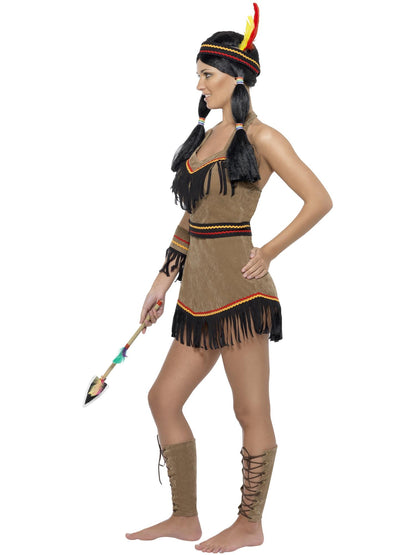 Native American Inspired Woman Costume, Brown, with Dress, Belt, Headband, Armband and Leg Cuffs.