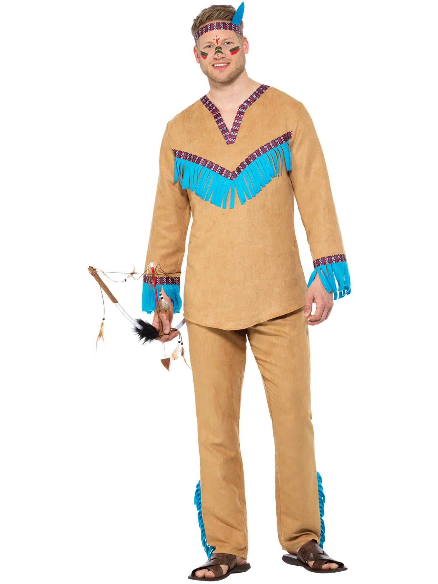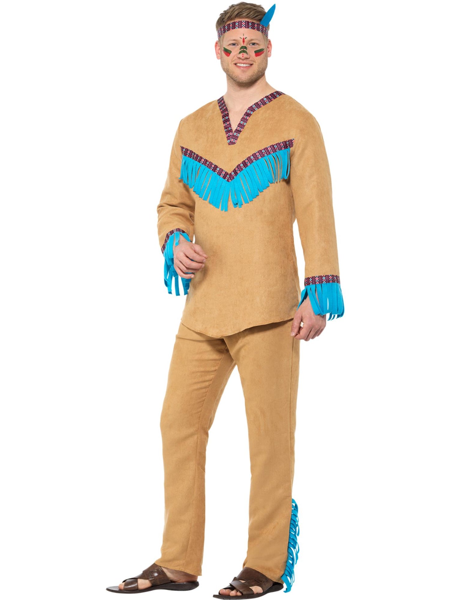 Native American Inspired Warrior Costume, Blue & Brown, with Top, Trousers & Headband