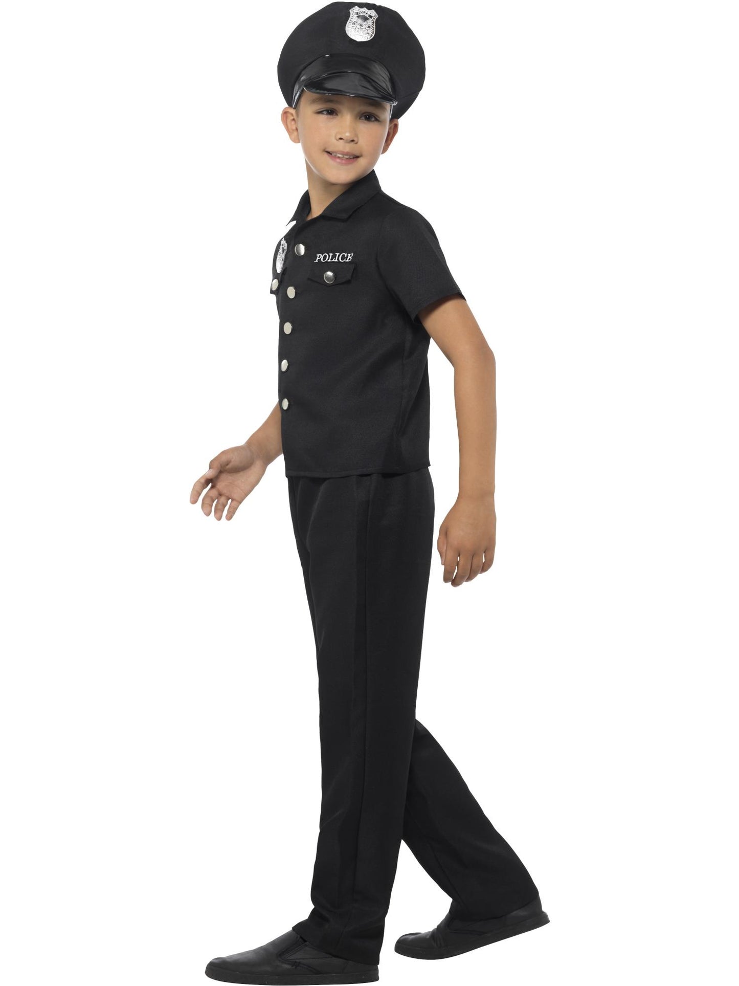 New York Cop Costume, Black, with Top, Trousers & Hat.