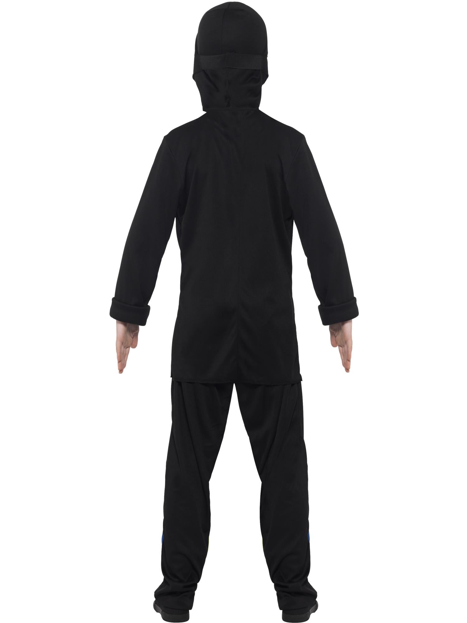 This Children's Ninja Assassin Costume is perfect for any fancy dress party. This costume includes a black and blue top and trousers, as well as a hood and mask for a fully completed look. Simply add shoes and a weapon of choice for an authentic look. This costume is also available in black and yellow, green and black, and white and black, so there's plenty of choice for you to pick your favourite! This costume is available in Children's sizes small, medium and large in each of the colours.