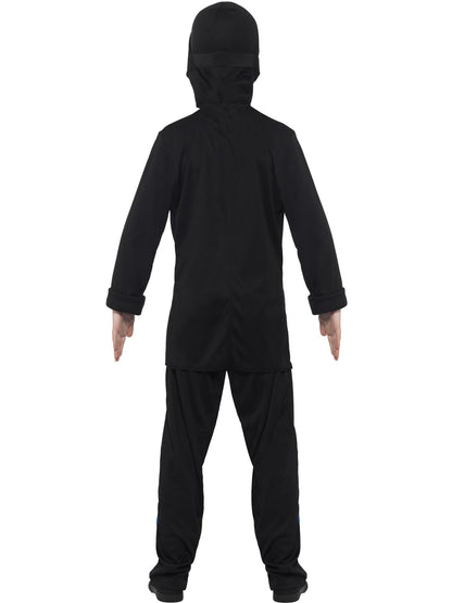Ninja Assassin Costume, Black & Blue, with Hood, Mask, Top & Trousers