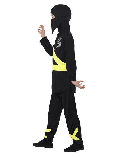 Ninja Assassin Costume, Black & Yellow, with Hood, Mask, Top & Trousers