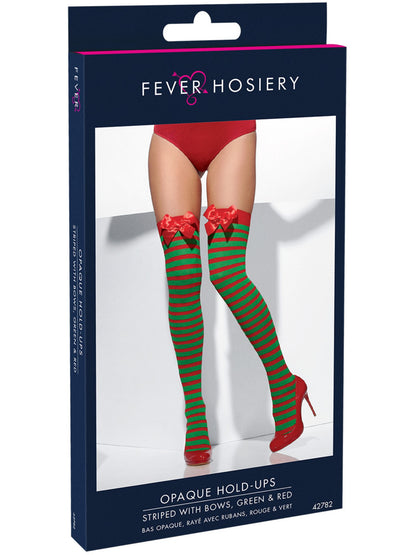 Opaque Hold-Ups, Red & Green, Striped with Bows