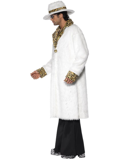 Attract the attention of all partygoers with the Pimp Costume. This male fancy dress costume includes a faux fur coat, hat, and trousers.