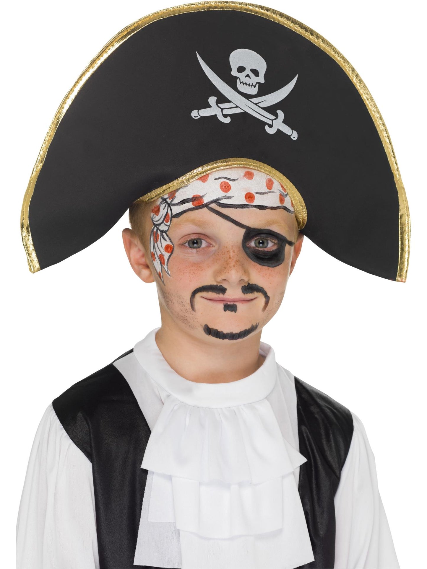 Kids can sail the seven seas in this Pirate Captain Hat, with a skull and crossbones print. Perfect for a kids birthday party.