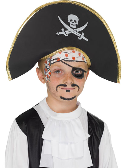 Pirate Captain Hat, Black, with Skull & Crossbones