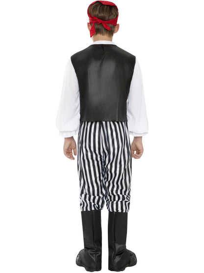 Ooh arr! Kids can sail the seven seas in the Pirate Costume. This fun fancy dress costume includes trousers, bootcovers, headscarf and belt. It's perfect for a kids birthday party!.