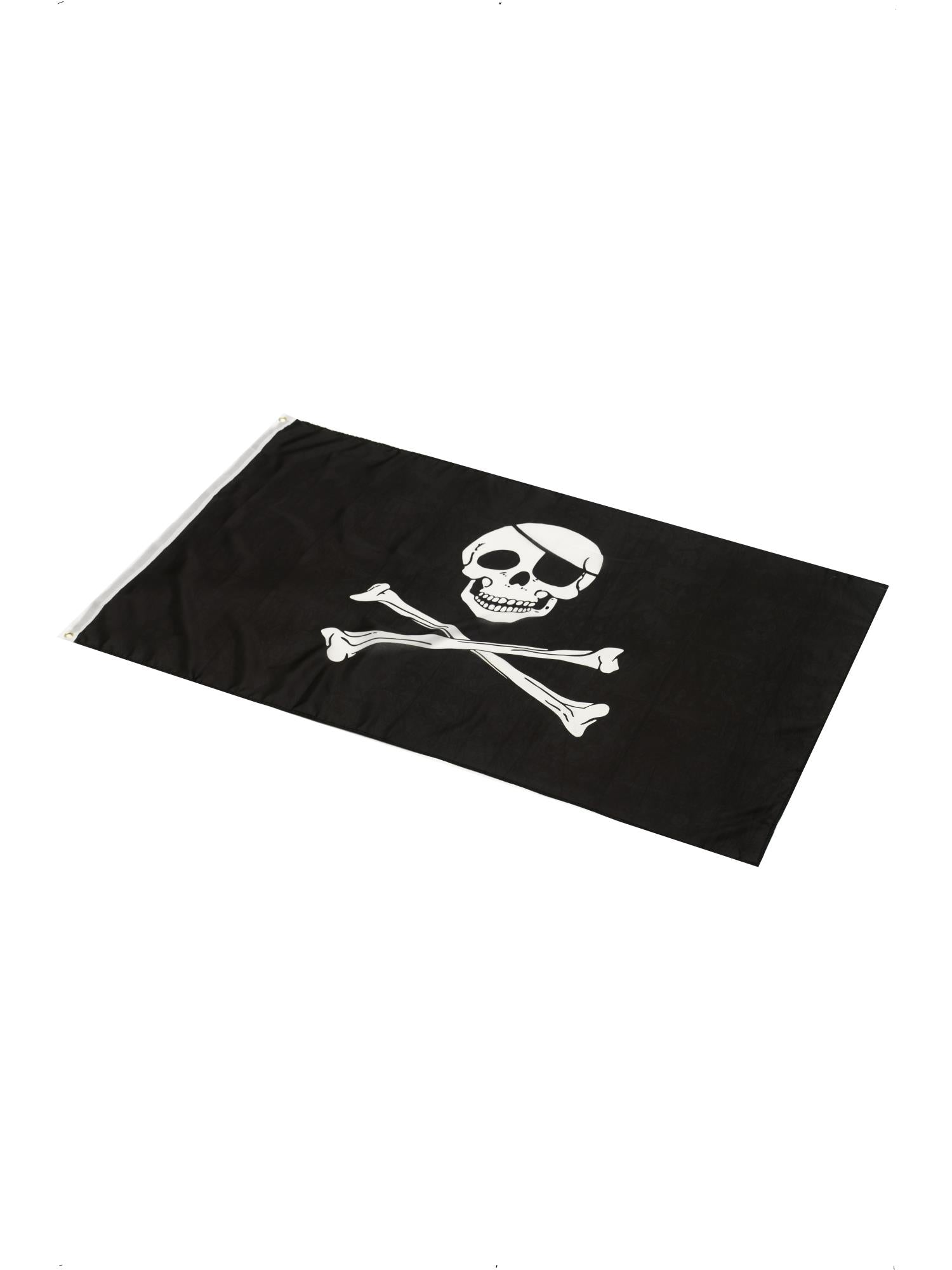 Pirate Flag, approx 152x91cm / 5inx3in, Black, with Large Skull & Crossbones Print