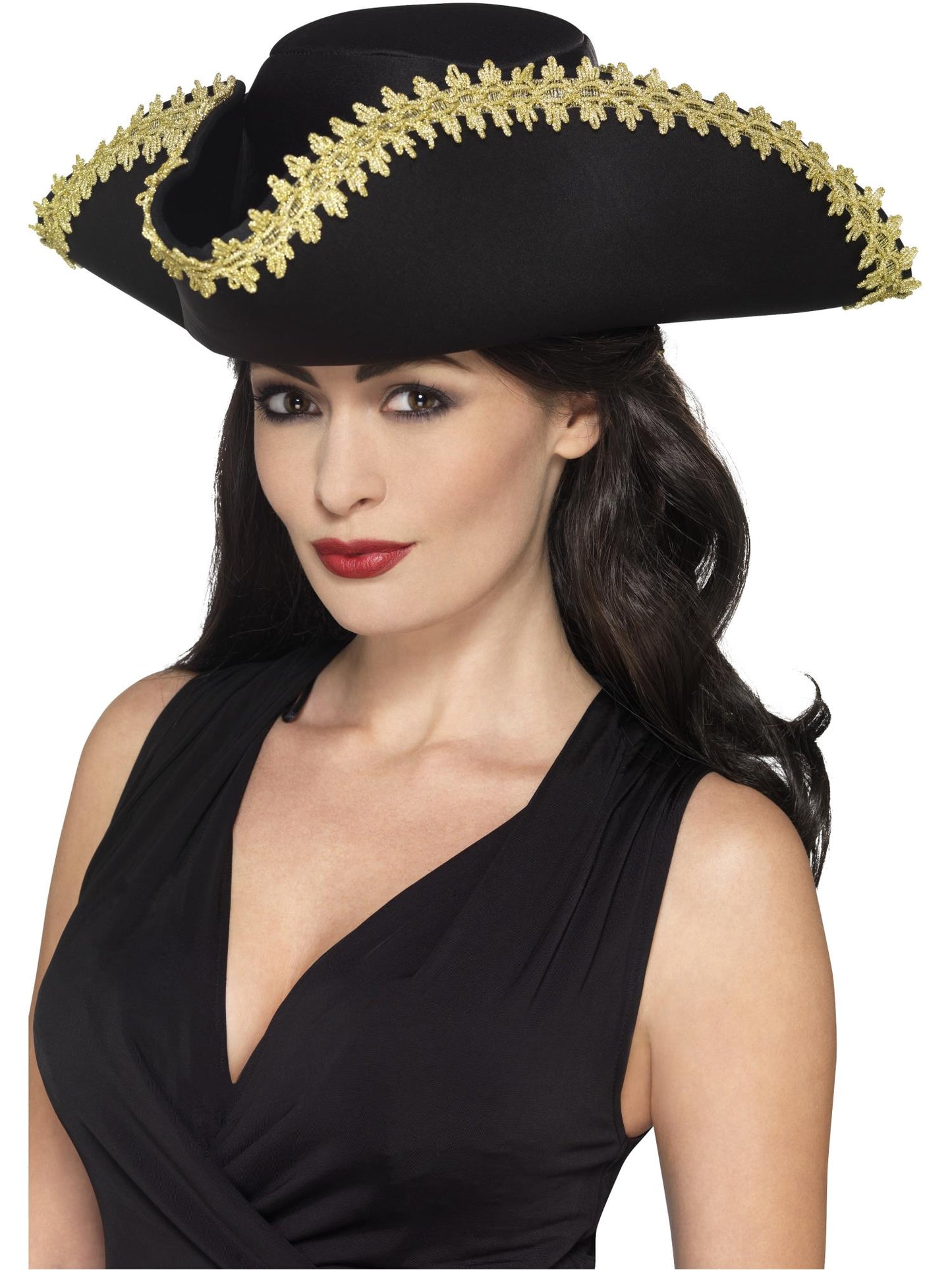Ahoy! This Pirate Hat is perfect for completing your Pirate fancy dress costume. With gold edging, this hat is sure to make you look like the Captain of the ship, ready for an adventure. Simply match this hat to your chosen Pirate costume and you're ready to go!