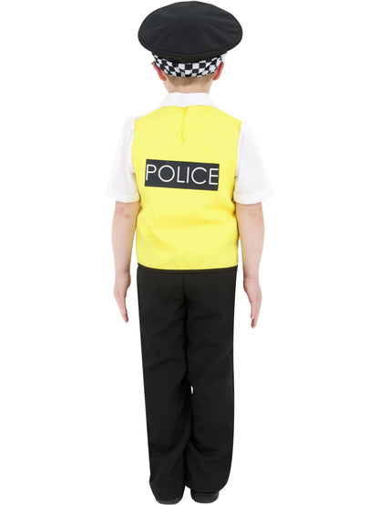 Police Boy Costume, Black, with Top, Trousers, Hat & Radio Set