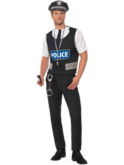 Policeman Instant Kit, Black, with Vest, Mock Shirt, Hat and Handcuffs
