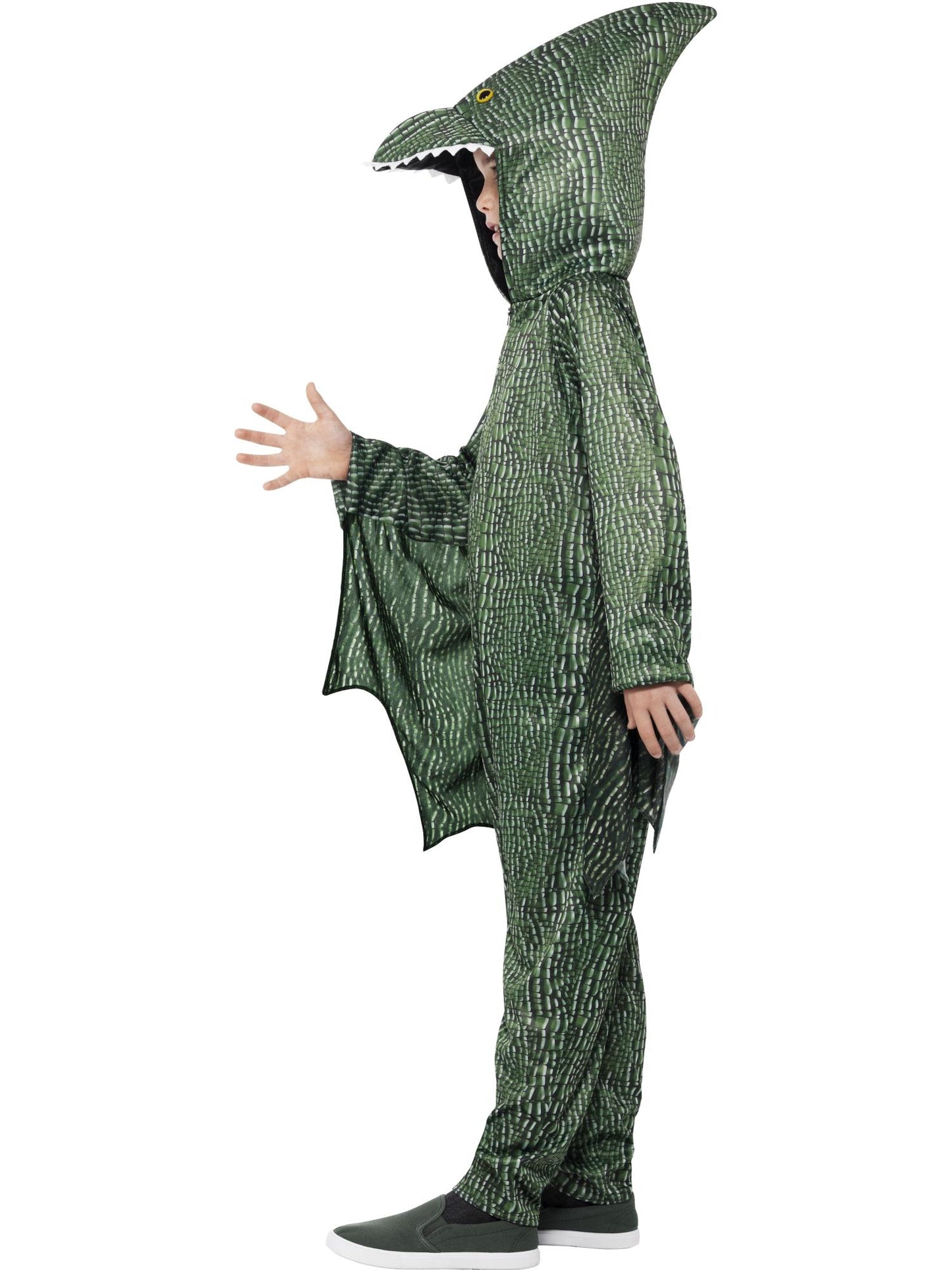 Pterodactyl Dinosaur Costume, Green, with Hooded All in One & Attached Wings