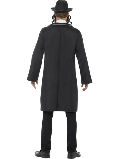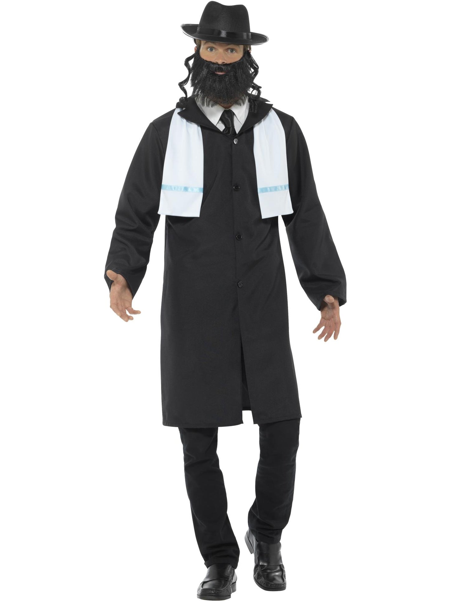 Rabbi Costume, Black, with Jacket, Scarf, Hat & Beard.