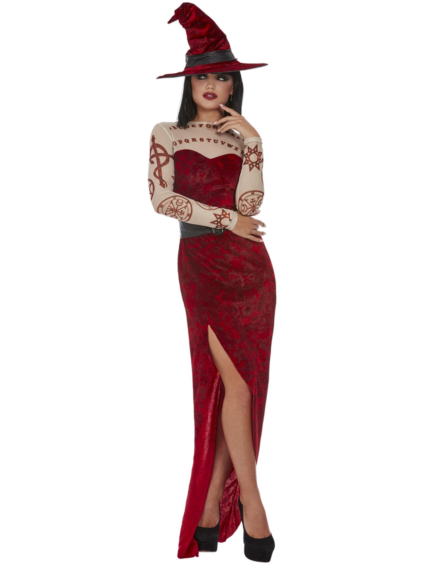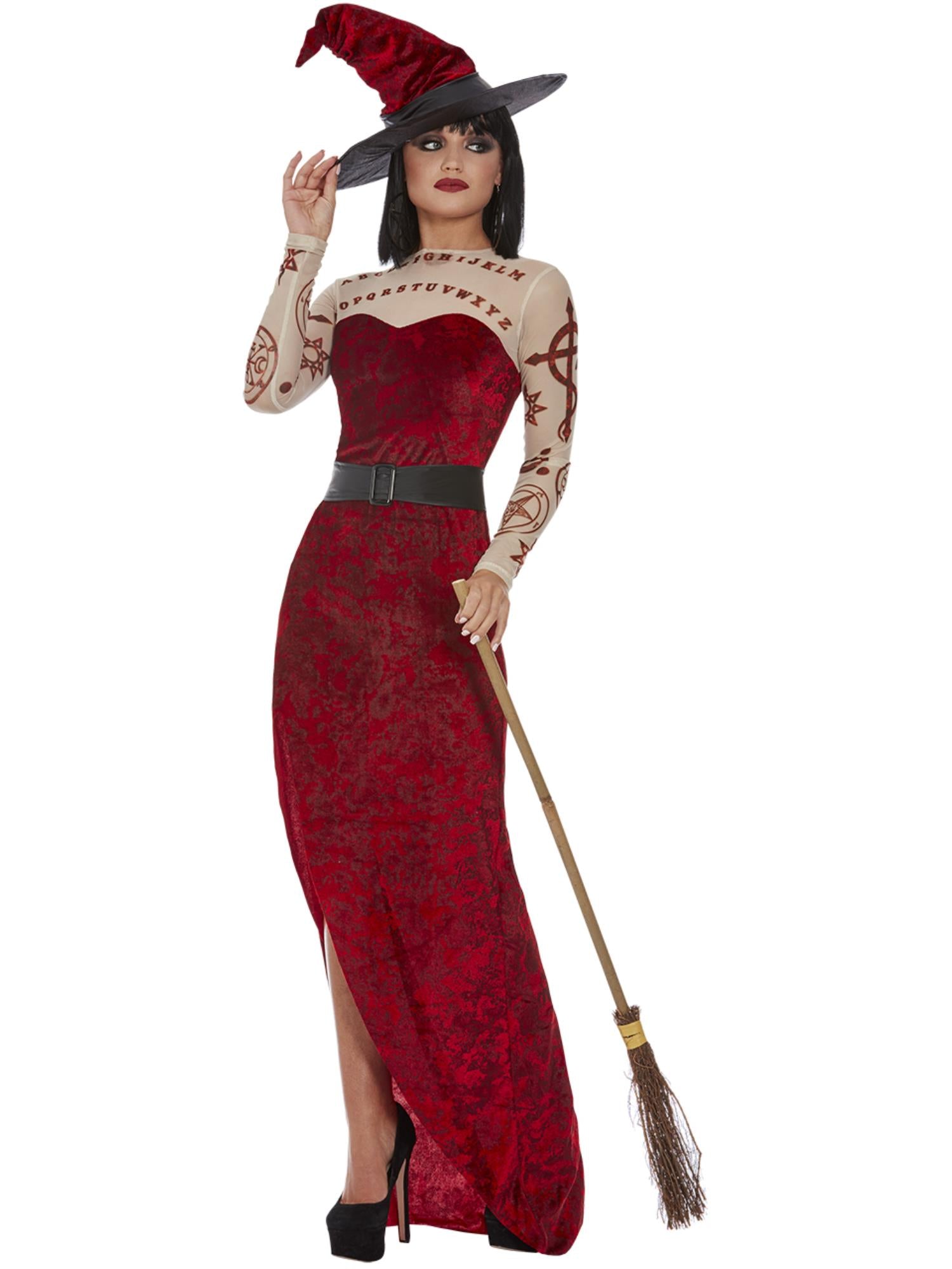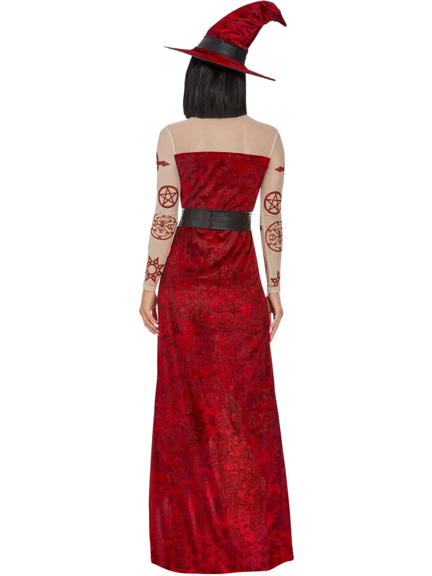 Satanic Witch Costume, Red, Dress, Belt & Hat
