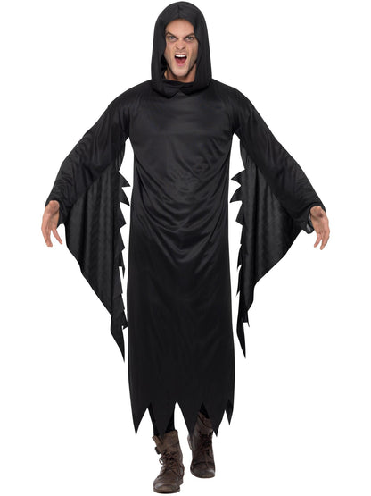 Create a fright in this Screamer Costume. Perfect for Halloween, the outfit consists of a spooky black Gown and Hood. For added fright factor don't forget to include our Grim Reaper Accessory. Happy Halloween!.