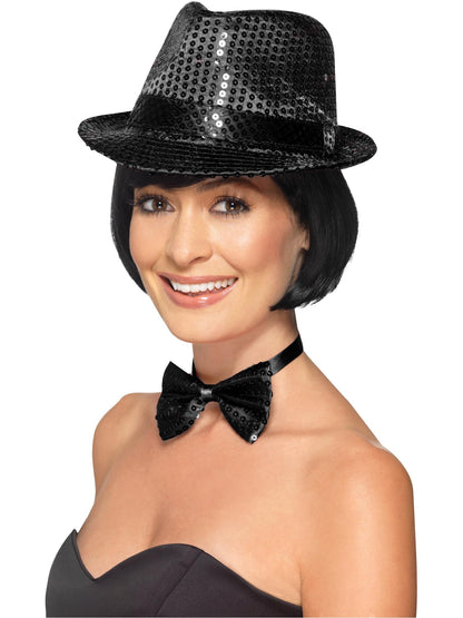 Sequin Trilby Hat, Black
