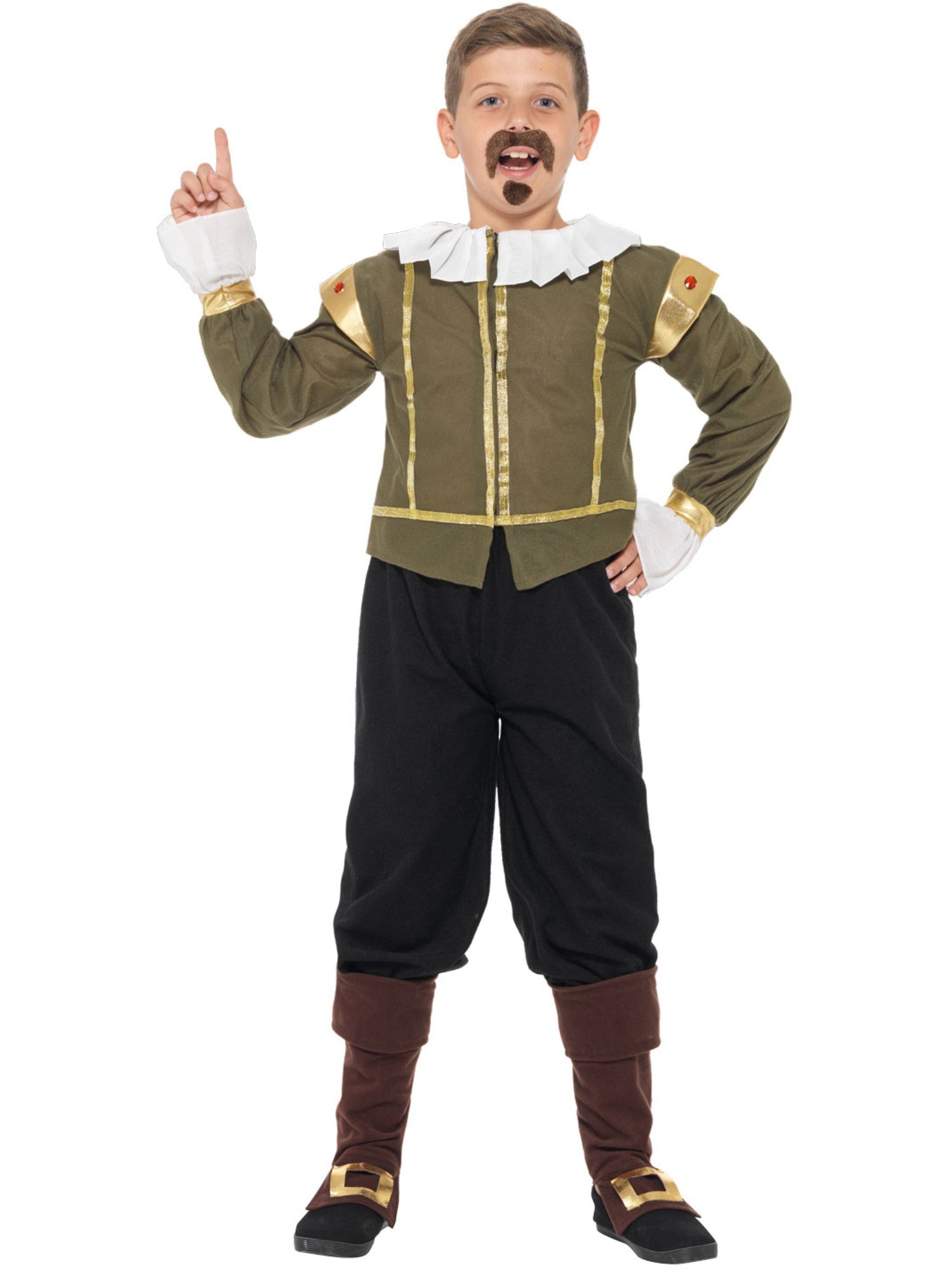Kids will love dressing up as the Bard himself in this Shakespeare costume. With jacket, trousers, bootcovers, tash & goatee, this costume is perfect for historical dress up days at school.