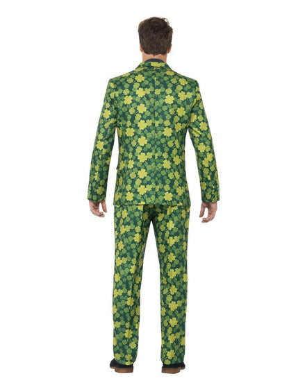 All the other party guests will be green with envy when you arrive in our Smiffy's Shamrock Stand Out Suit Our high quality Stand Out suit comes with a Shamrock printed Long sleeved fully lined jacket with two lower fake pockets and one fake breast pocket. The jacket has functional buttons on the front plus built in shoulder pads and fake buttons on the sleeve cuffs. The matching Trousers have button and zipper fastening plus a concealed hook closure. The waist has belt loops plus concealed wide elastic on the sides of the waist for added flexibility and comfortable fit. The trousers have two functional side pockets and a fake back pocket. No suit would be complete without a Tie and also included is a Shamrock Tie. All that's left for you to do is to find the perfect shirt to go underneath and you'll be ready to become the centre of attention.