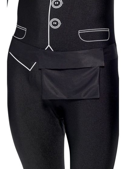 Shot Gangster Second Skin Costume, Black, with Bum Bag, Concealed Fly and Under Chin Opening