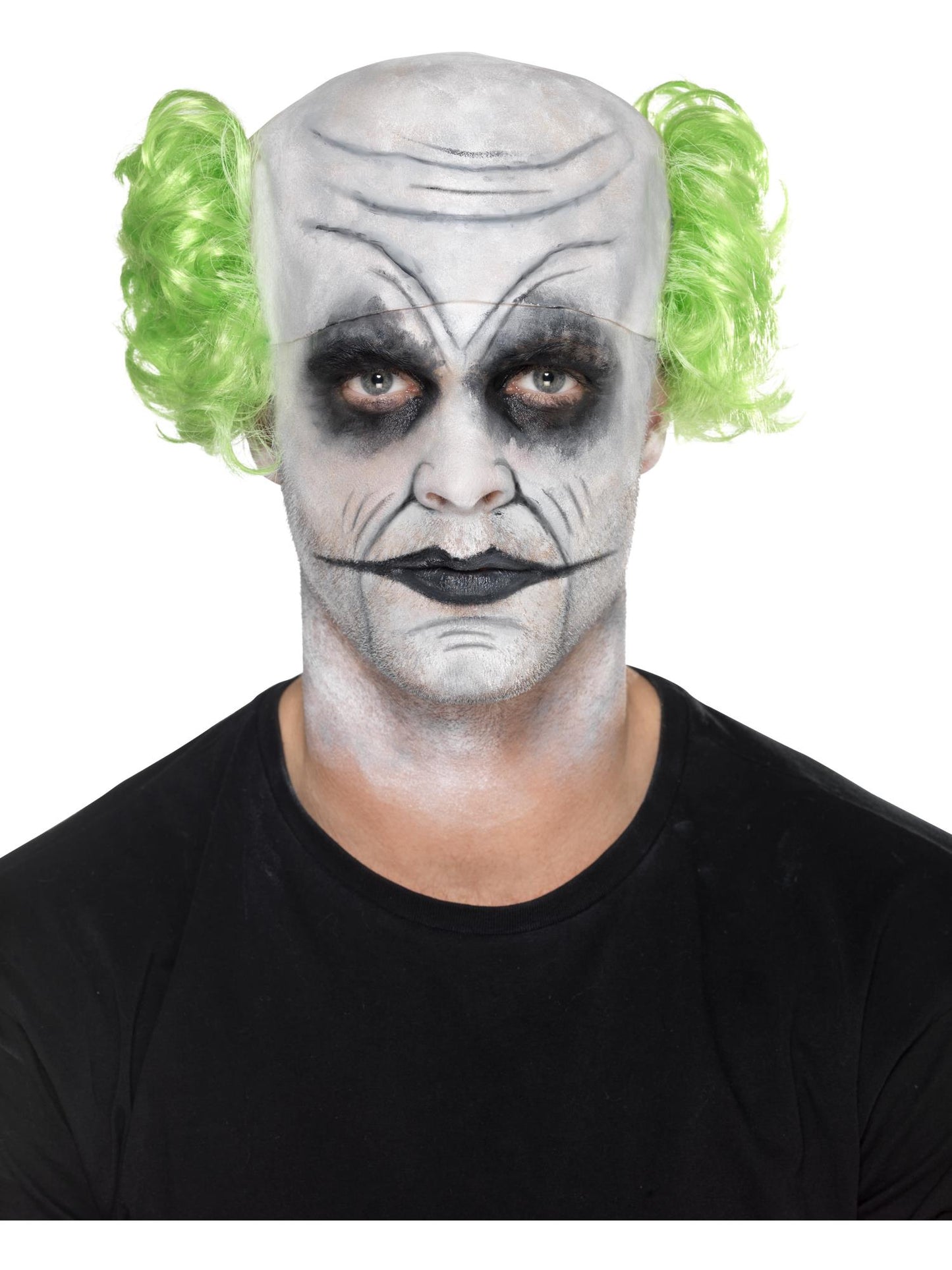 Complete that creepy clown look without a mask. Includes Bald Cap, Hair, Nose, Facepaint, Blood and Applicator.