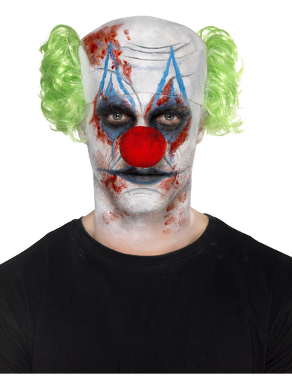 Sinister Clown Make-Up Kit, Aqua, Multi-Coloured, Bald Cap, Hair, Nose, Facepaint, Blood & Applicator