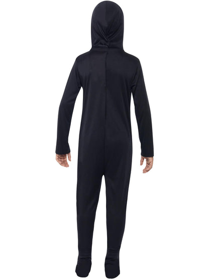 Skeleton Costume, Black, with Hooded All in One