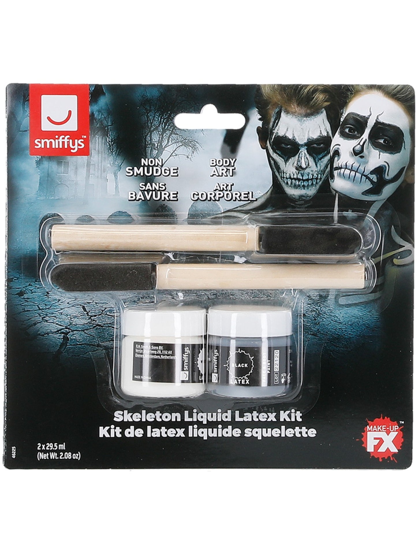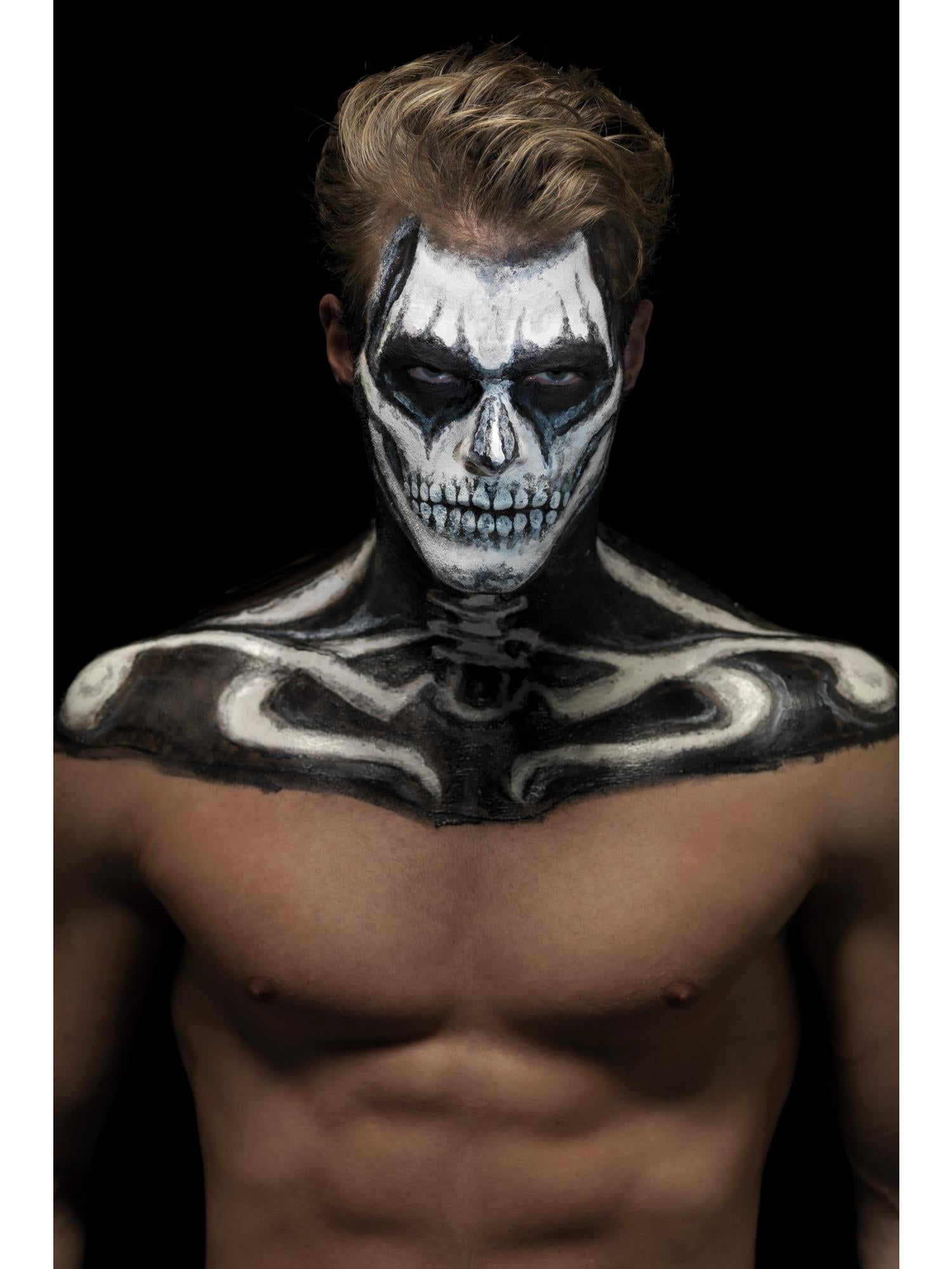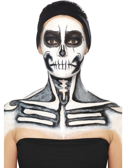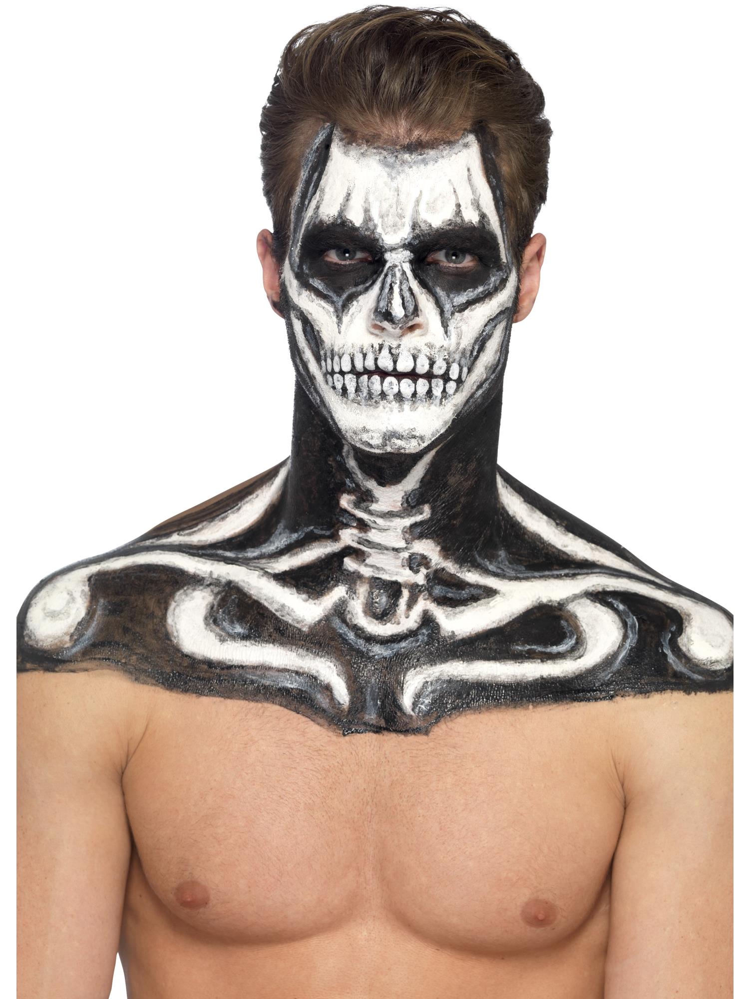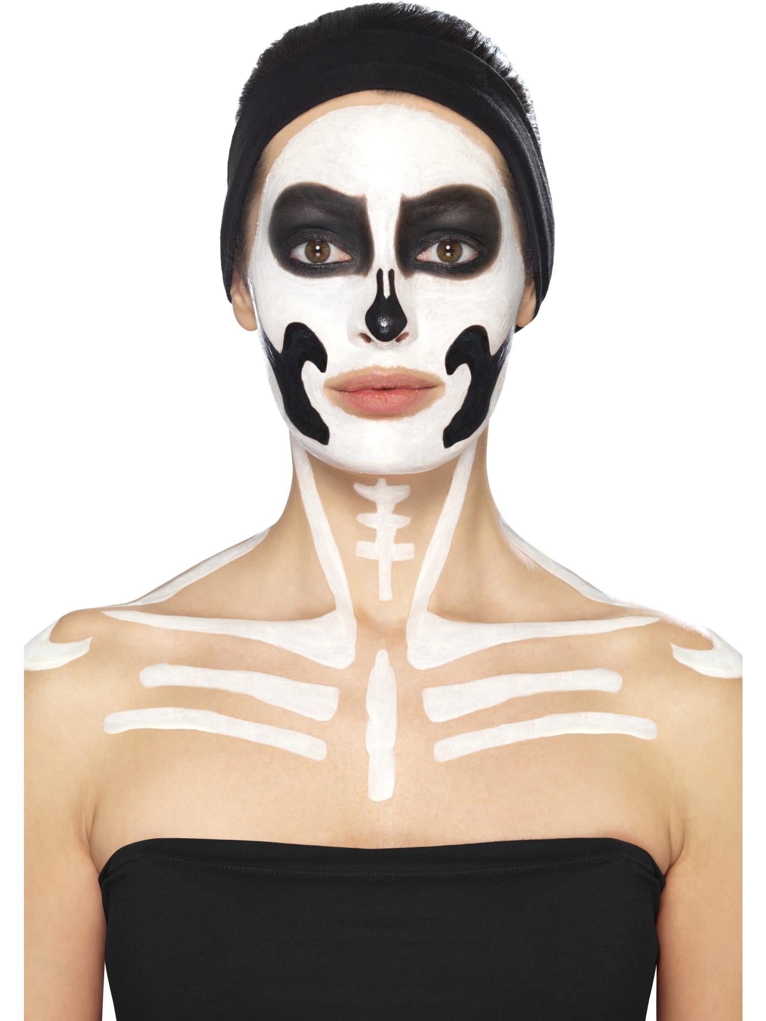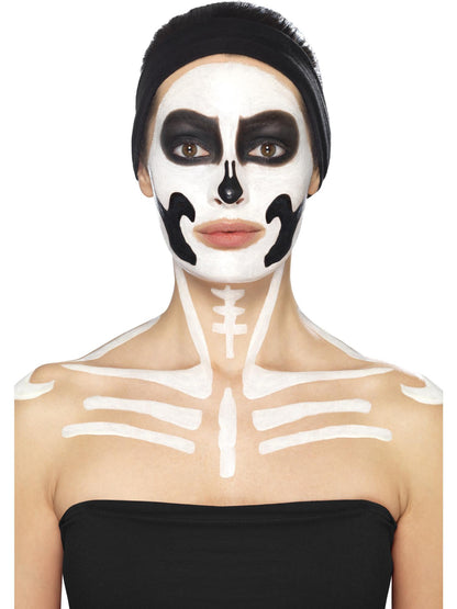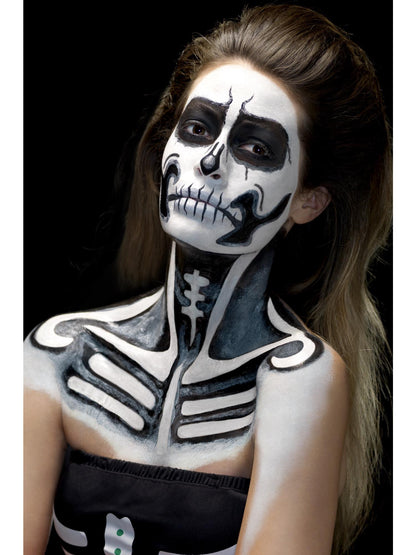 The Smiffys Skeleton Makeup Kit includes black and white liquid latex pots plus 2 brushes. It's easy to apply and remove and is perfect for creating a creepy Halloween look!.