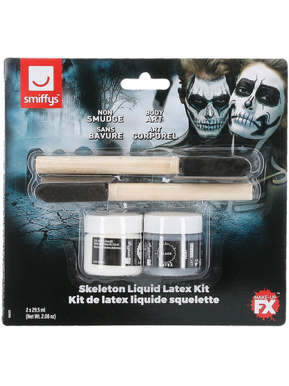 Skeleton Liquid Latex Kit, with Black & White Make Up Pots & 2 Sponge Applicators, 29.57ml/1 US fl.oz