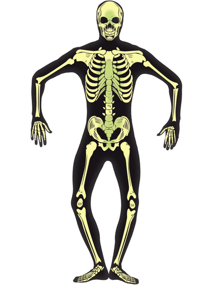 This Skeleton Glow in the Dark Second Skin Costume is perfect for the scary season. This alternative Halloween fancy dress costume comes with a concealed fly and under chin opening.