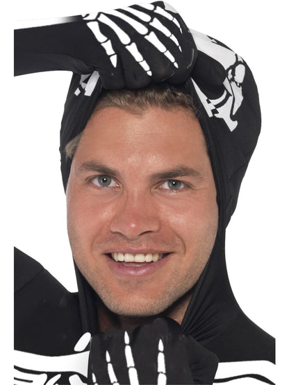 Skeleton Second Skin Costume, Black, with Concealed Fly & Under Chin Opening, GID
