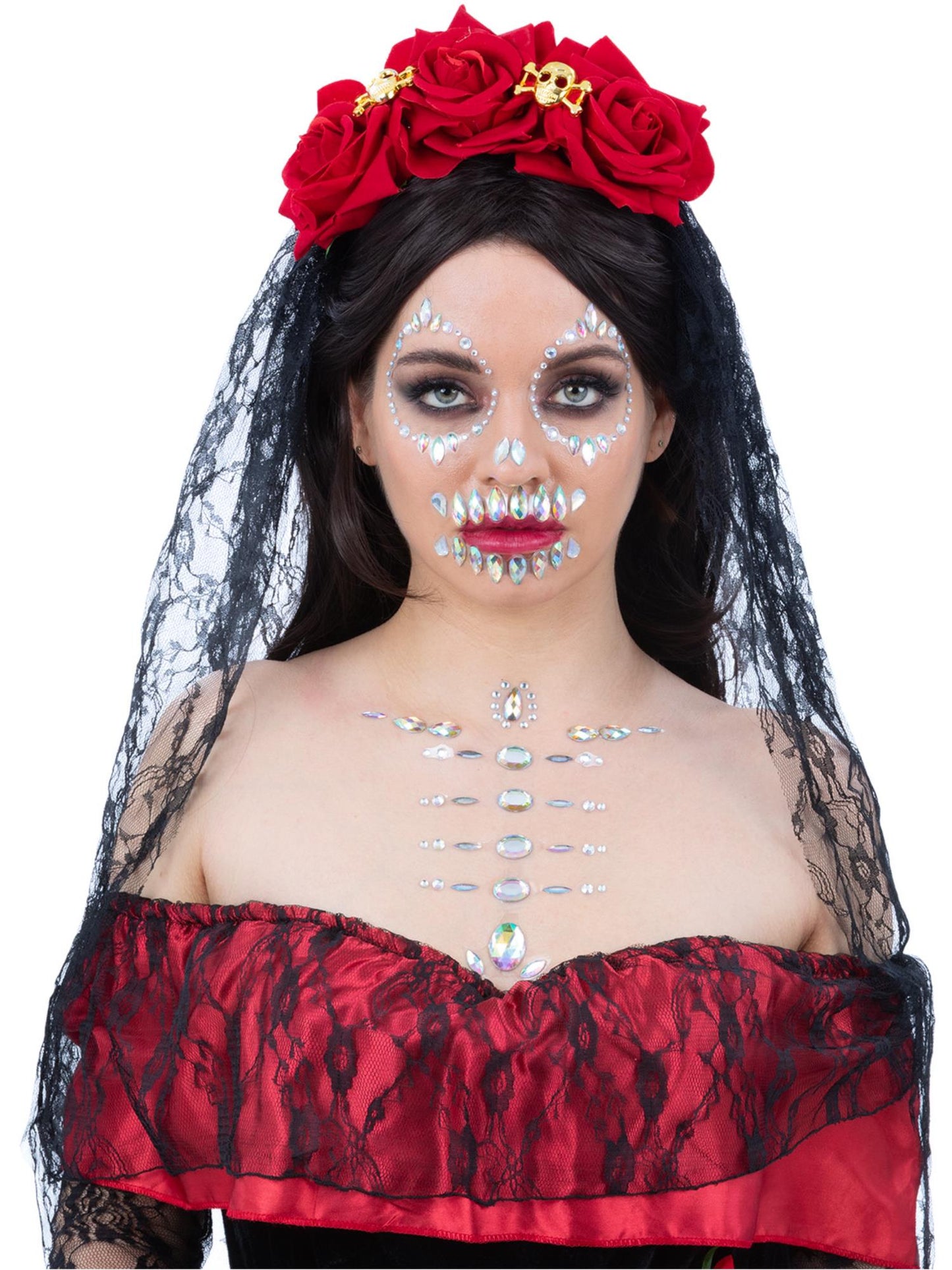 Smiffys Make-Up FX, Skull Face & Body Jewels, 1 Sheet, Self Adhesive