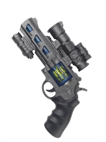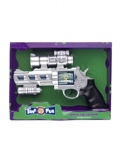 Space Cop Revolver, Silver, with Light and Sound, 25cm / 10in