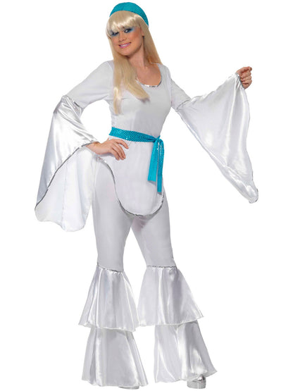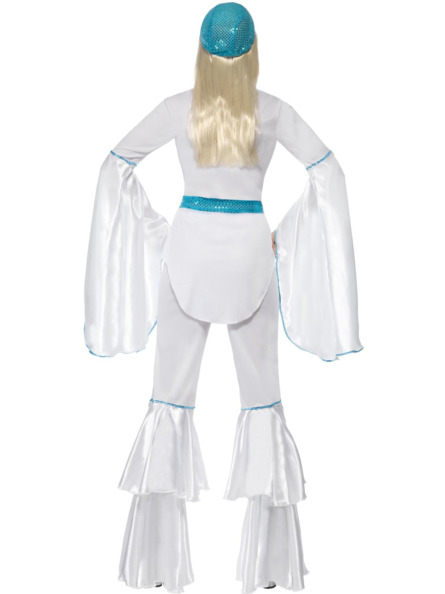 Pay tribute to the Swedish stars with the Super Trooper Costume. This female 70s disco fancy dress costume includes a top, trousers, hat and belt tie.
