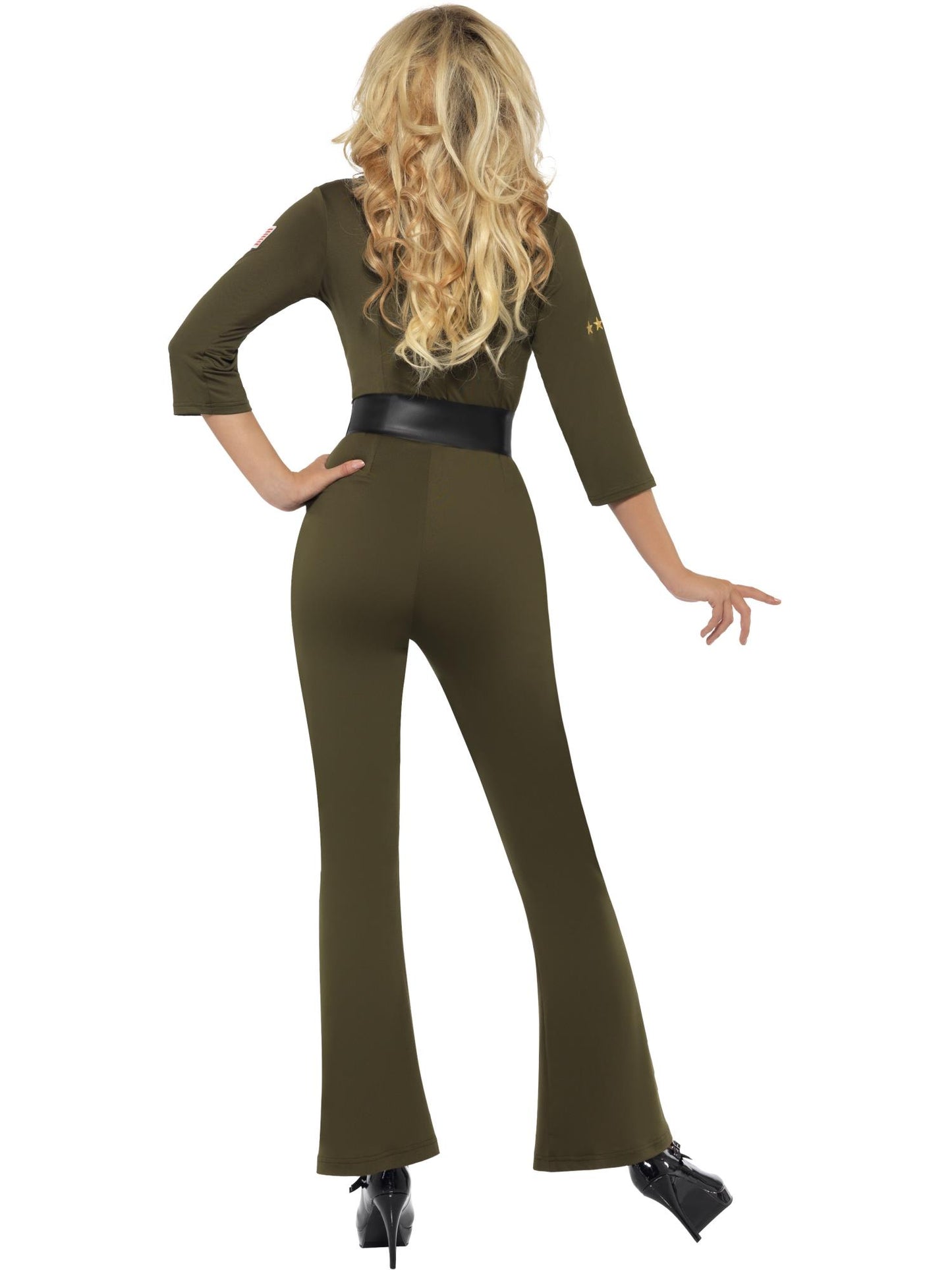 I feel the need, the need for speed! Ladies, look instantly recognisable in our officially licensed Top Gun Officer Costume. The classic costume includes a jumpsuit and belt. Add our Aviator Specs for a truly show-stopping look. You'll definitely heat up the party wearing this number!.