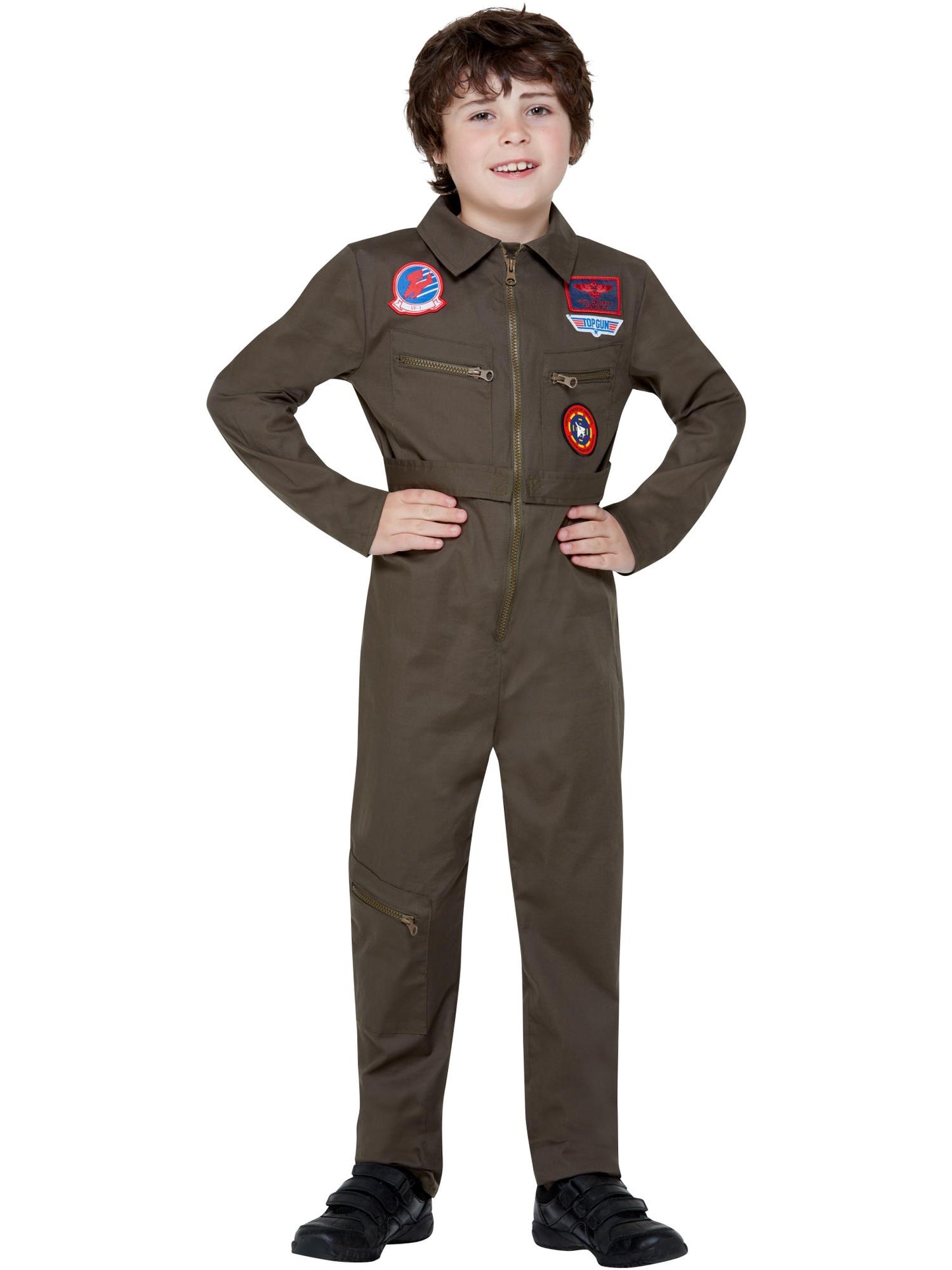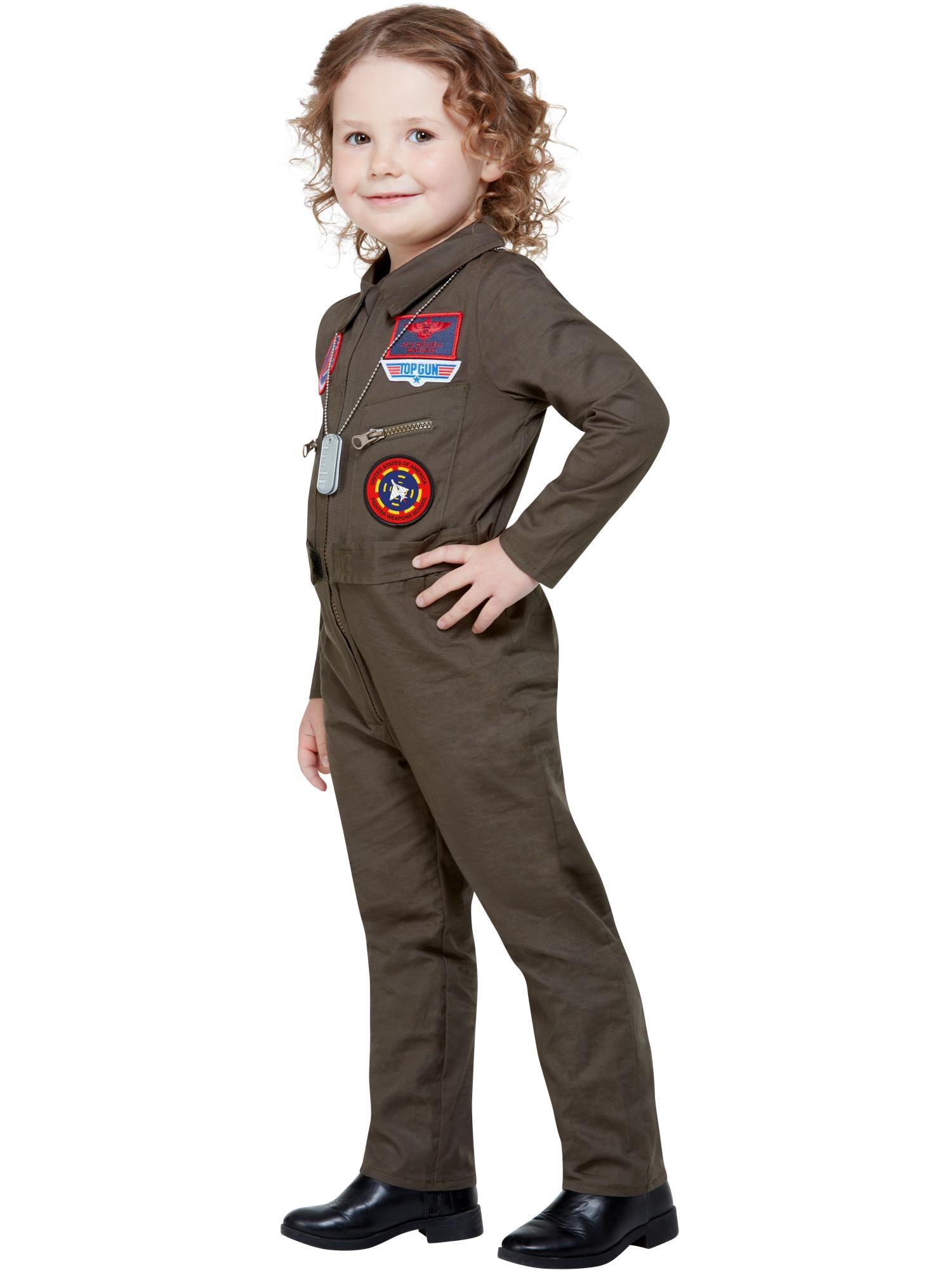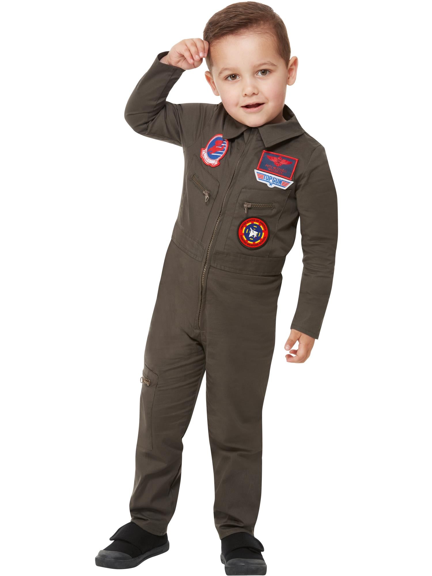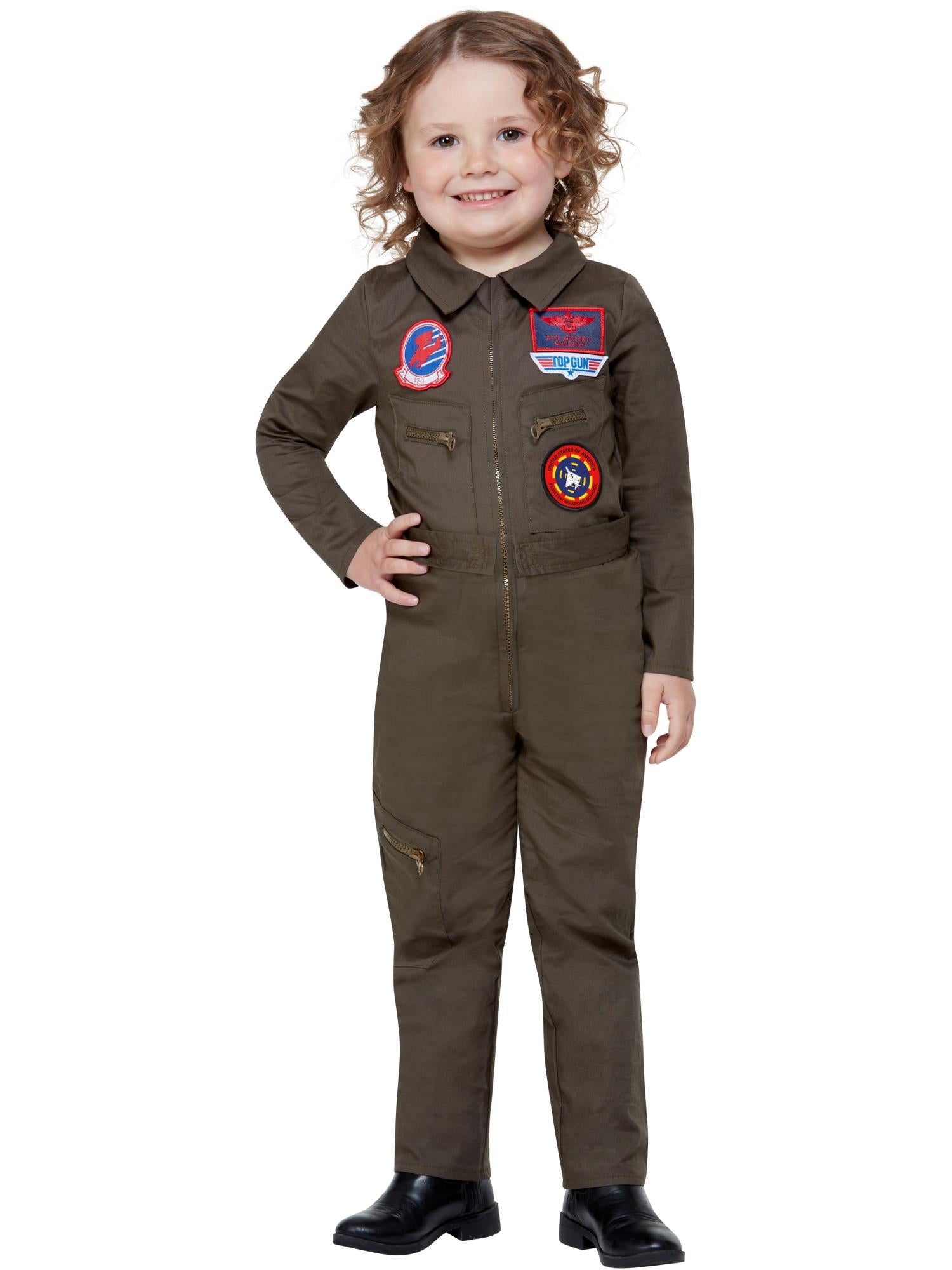 Our official Top Gun Kids Costume with Jumpsuit is a fabulous children's top gun fancy dress outfit suitable for boys of all ages. We have a full range of sizes available from toddler to teen.