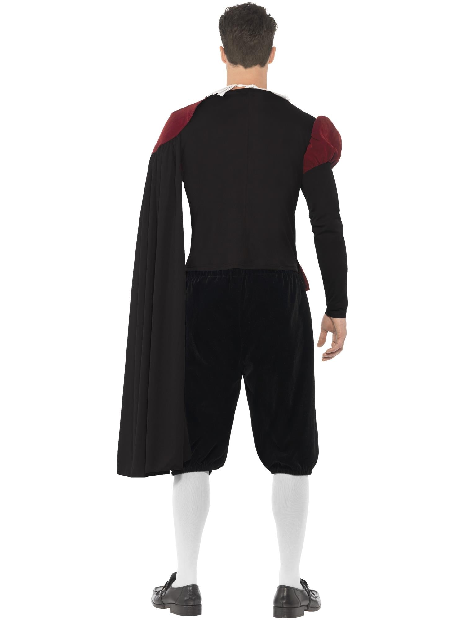 Tudor Lord Deluxe Costume, Black, with Top, Trousers, Cape & Neck Ruffle
