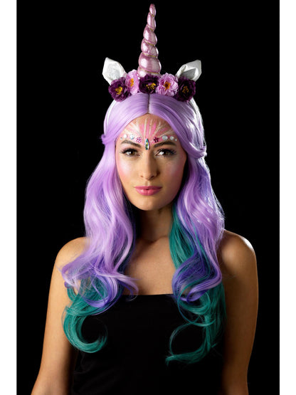 Now you can totally transform yourself into a unicorn when you wear our Unicorn Cosmetic Kit to your next fancy dress party or event. This multi-coloured Kit will leave you looking magical, and contains 2 colours, Glitter, Shimmer and 8 Gems, as well as an applicator Sponge and Brush to finish your face paint. To complete your costume, pair with our Unicorn Headband and Fashion Unicorn Wig.