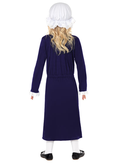Victorian Poor Girl Costume, White, with Dress, Apron & Hat