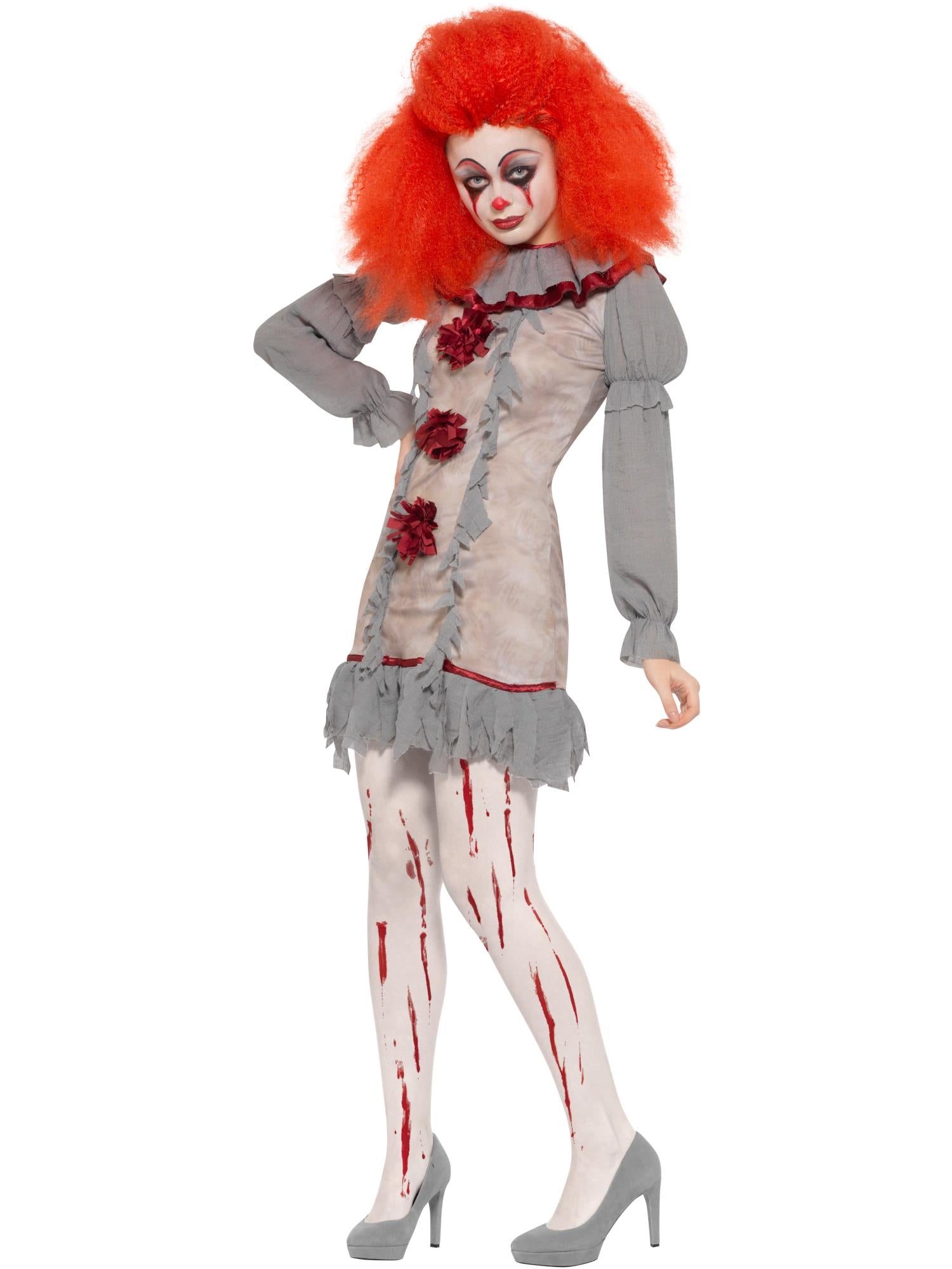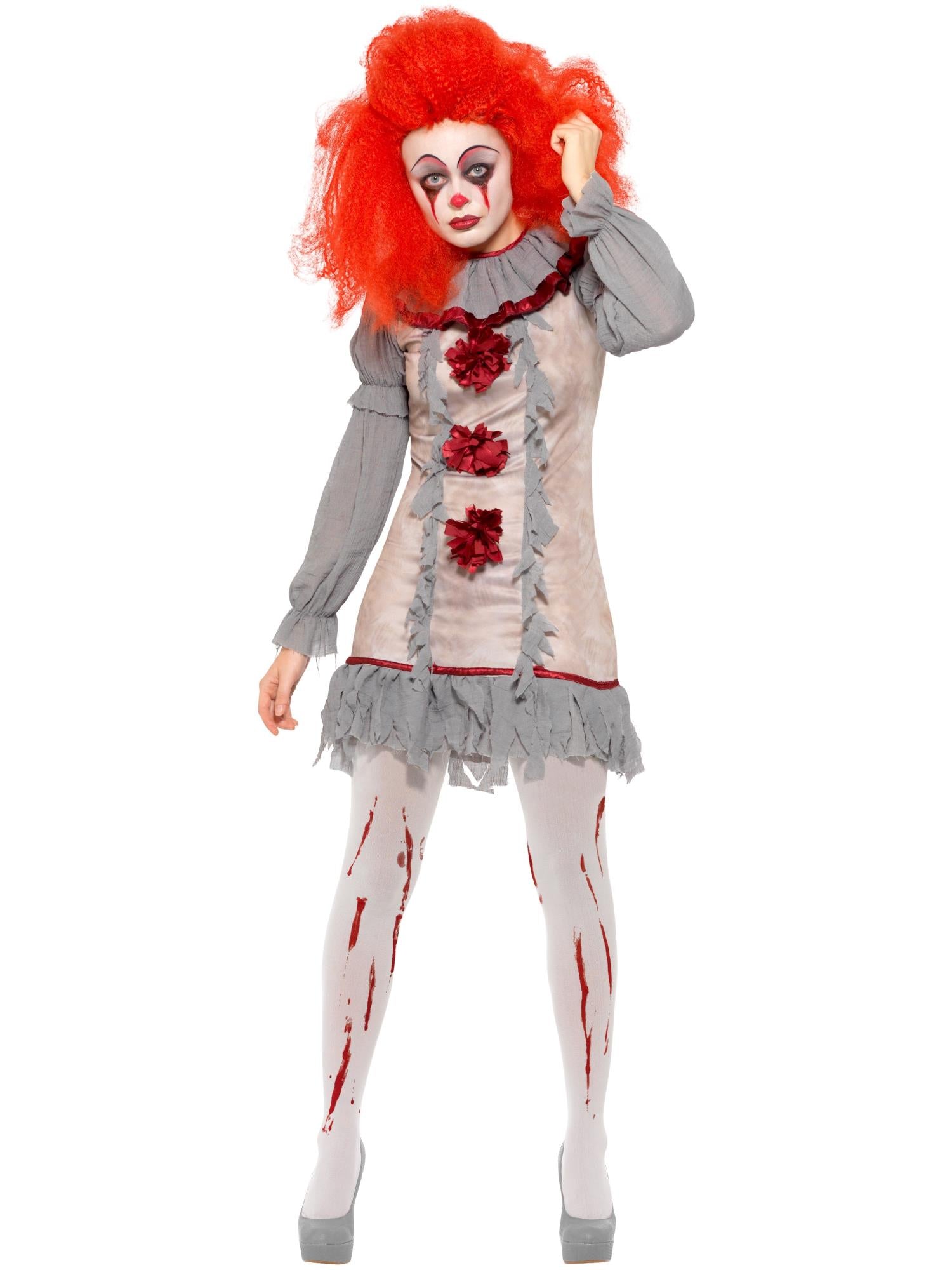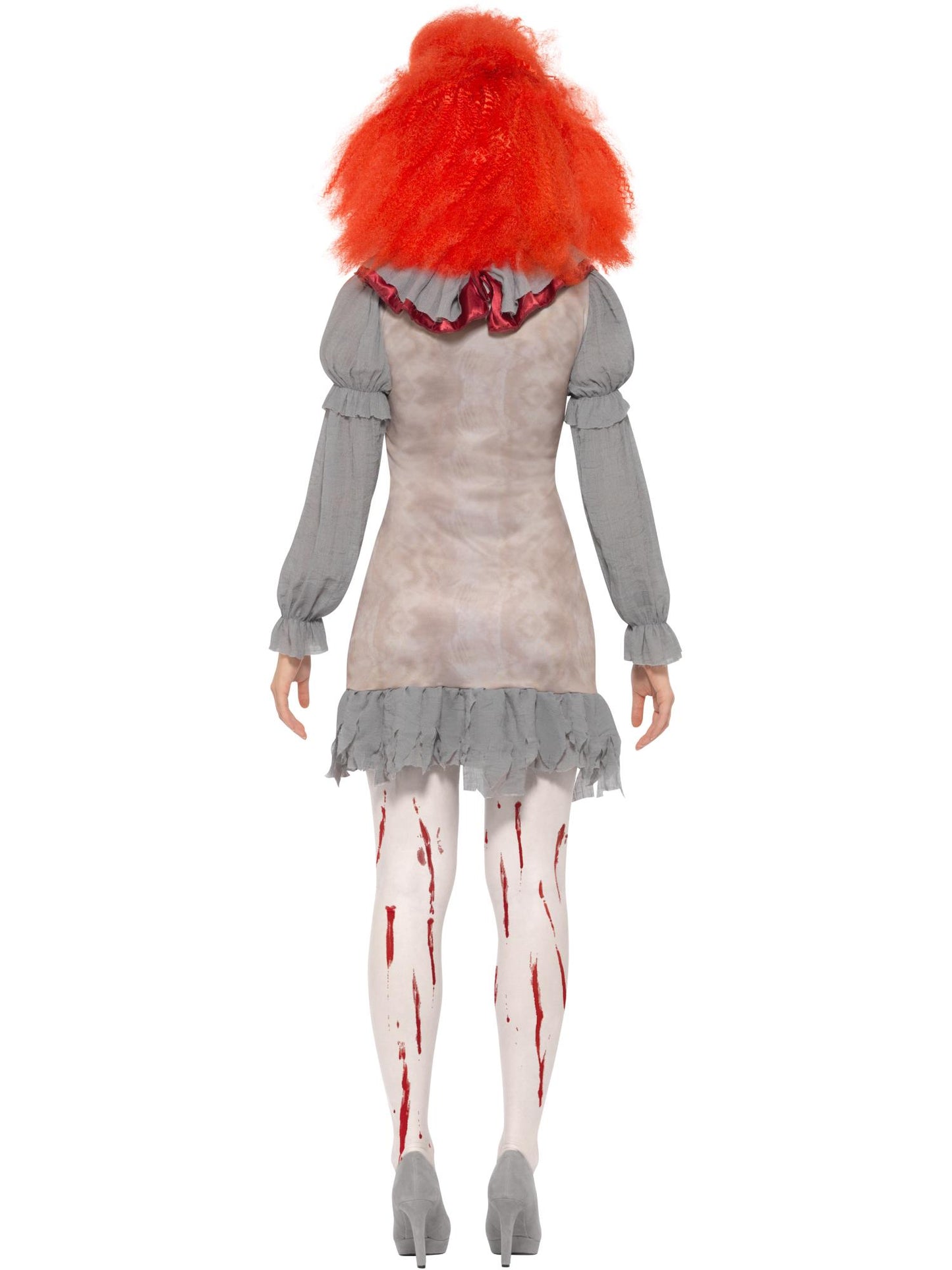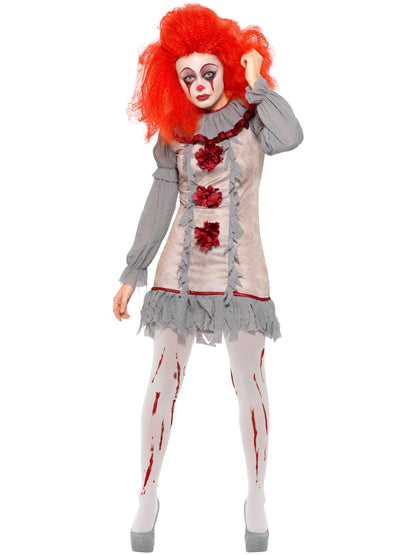 Vintage Clown Lady Costume, Grey & Red, with Dress & Neck Ruffle.