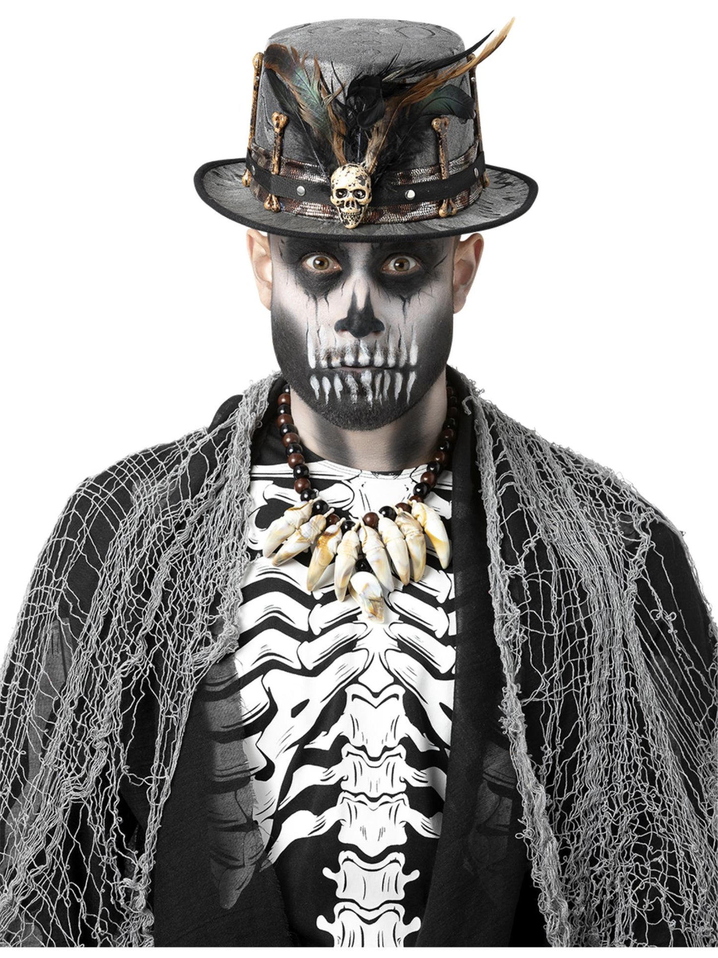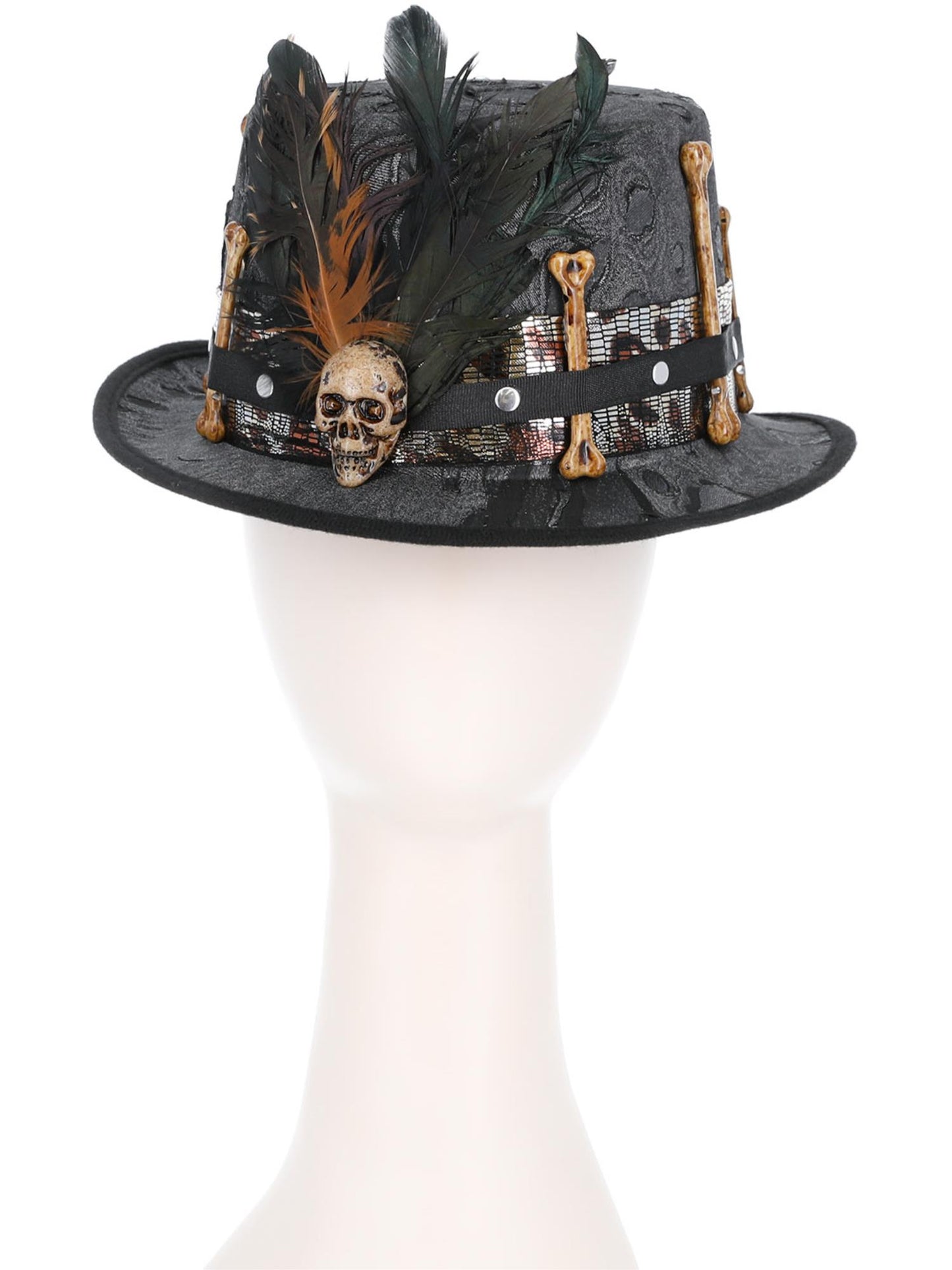 Witch Doctor Distressed Black Top Hat, with Feathers