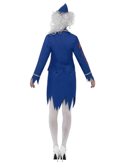 Women's Zombie Air Hostess Costume, Blue, with Jacket, Skirt, Hat and Scarf
