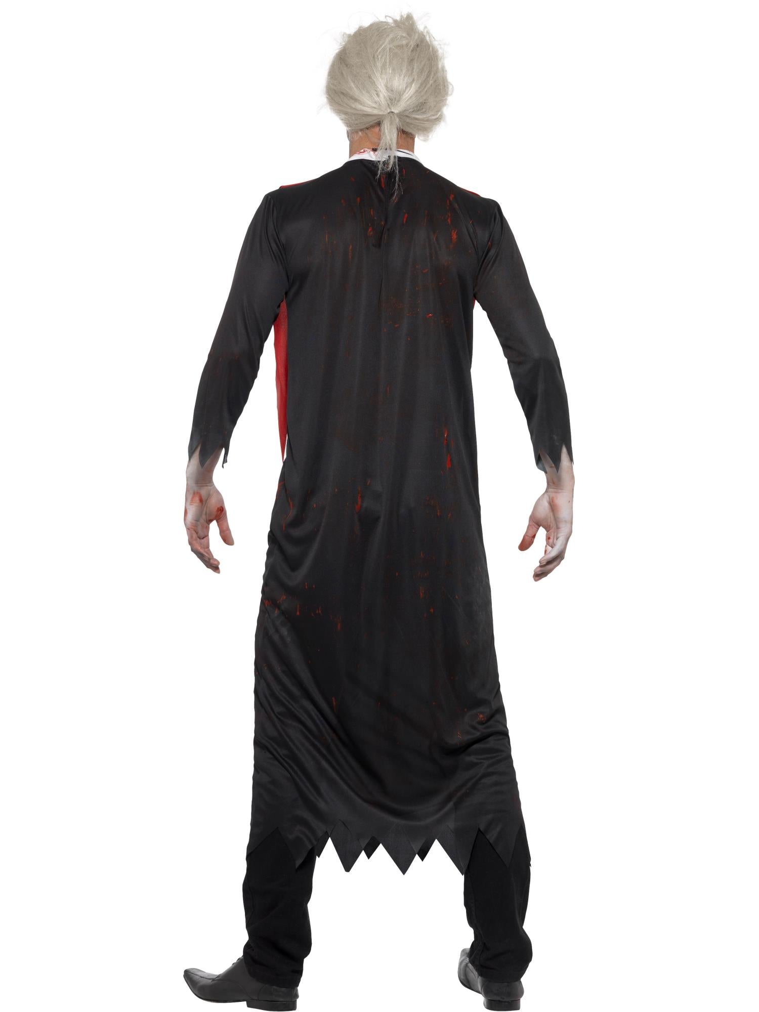 Men's Zombie High Priest Costume, Black, with Tunic & Cross Necklace.