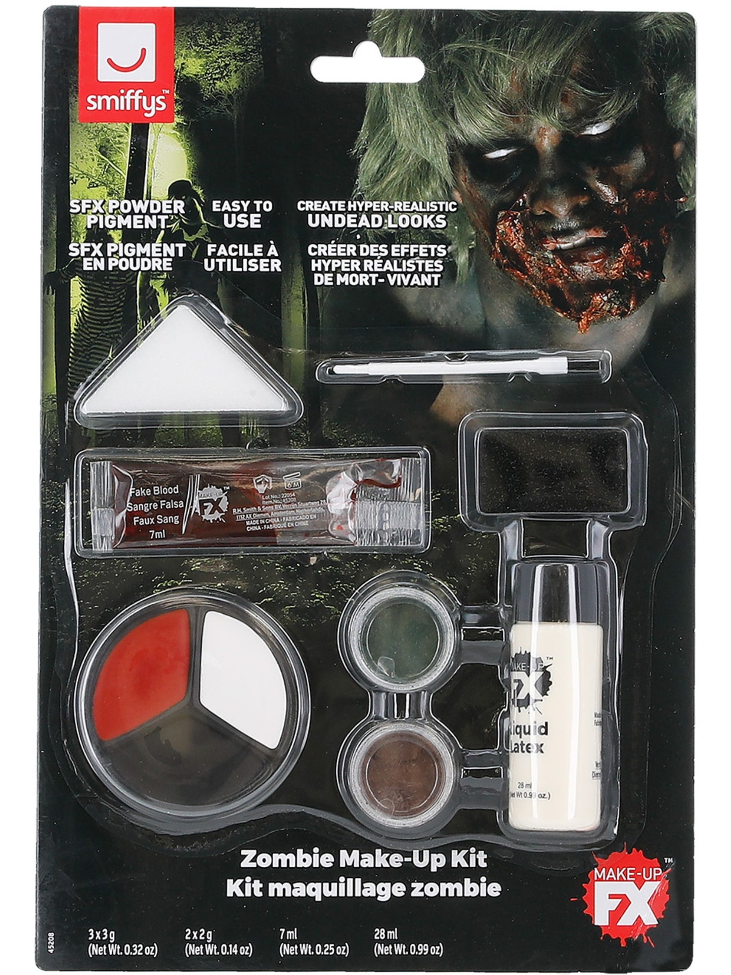 Get that 'freshly risen' zombie look this Halloween! Includes Zombie Dirt, Liquid Latex, Facepaint and Blood.