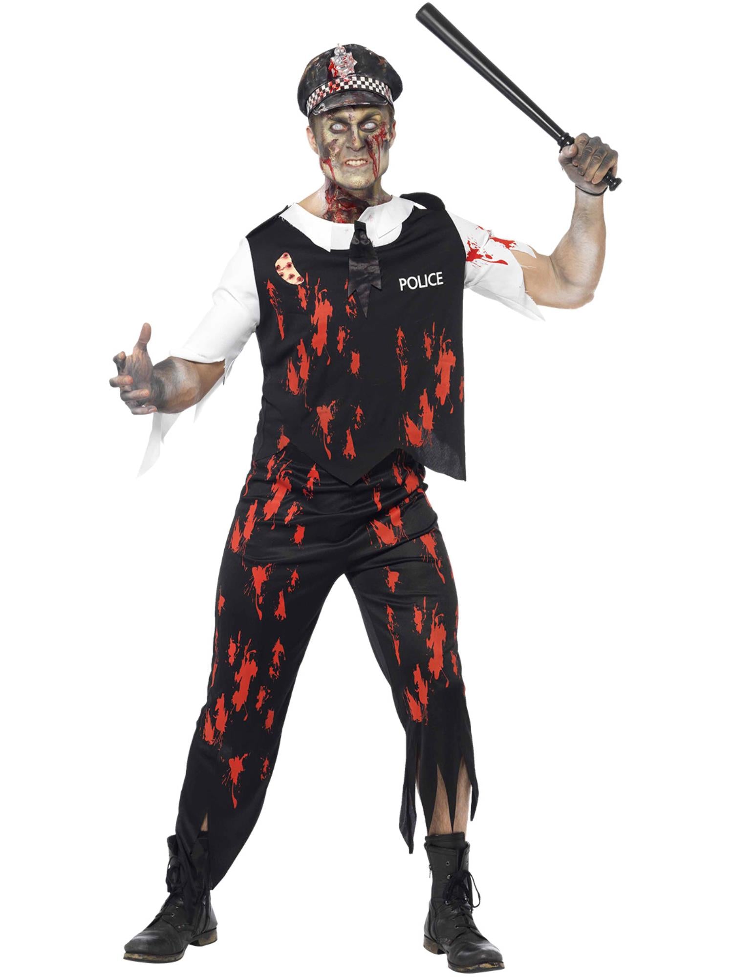 Men's Zombie Policeman Costume, with Top, Tie, Latex Piece, Trousers & Hat.